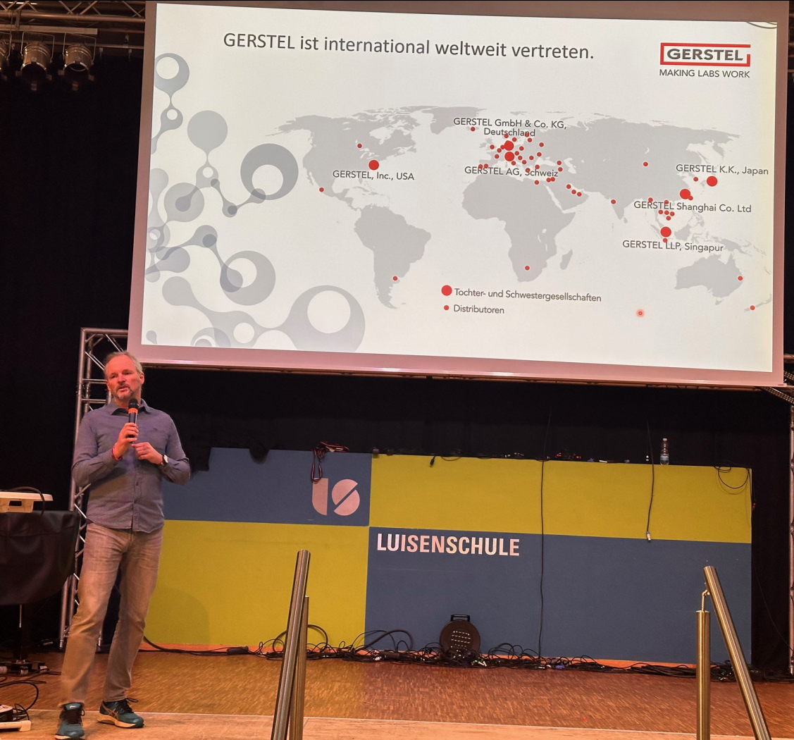 Dr. Kleine-Benne arbeitet für das internationale Unternehmen Gerstel und erklärte anschaulich das Thema Chromatographie. Schritt für Schritt wurde erläutert, wie Proben vorbereitet werden, wie Stoffe analysiert werden und welche verschiedenen Arten der Chromatographie es gibt. Anhand alltagsnaher Beispiele wurde deutlich, wo und wie diese Verfahren in der Praxis eingesetzt werden.