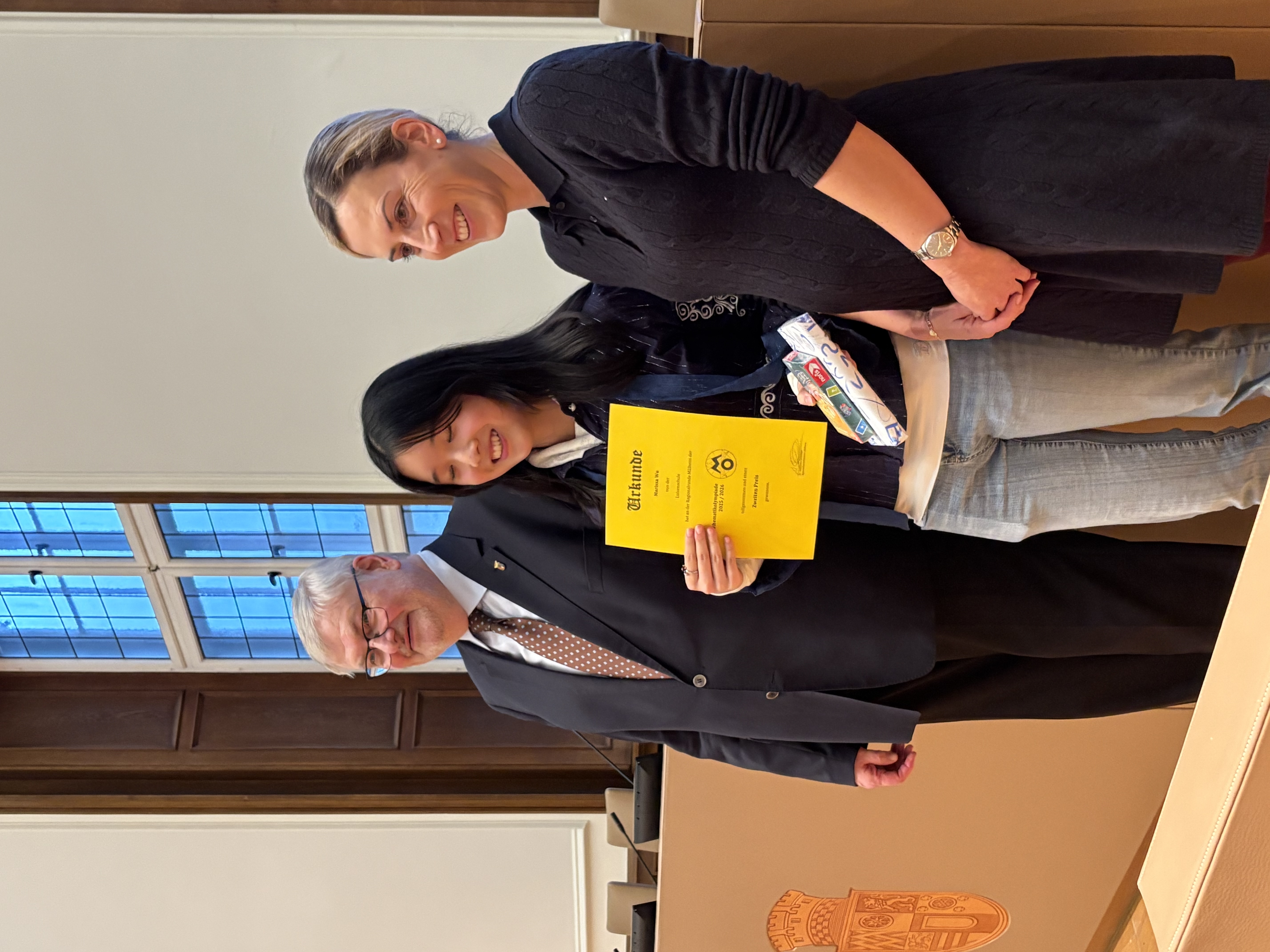 Sowohl Zichen Weng (6a) als auch Maya Firsching (6e) erreichten einen 3. Platz, Marissa Wu (7c) gewann einen 2. Platz und Zixuan Huang (James) aus der 9b und Stefanie Wu erzielten mit ihrer tollen Leistung einen 1. Platz – ihnen drücken wir für die Landesrunde die Daumen!