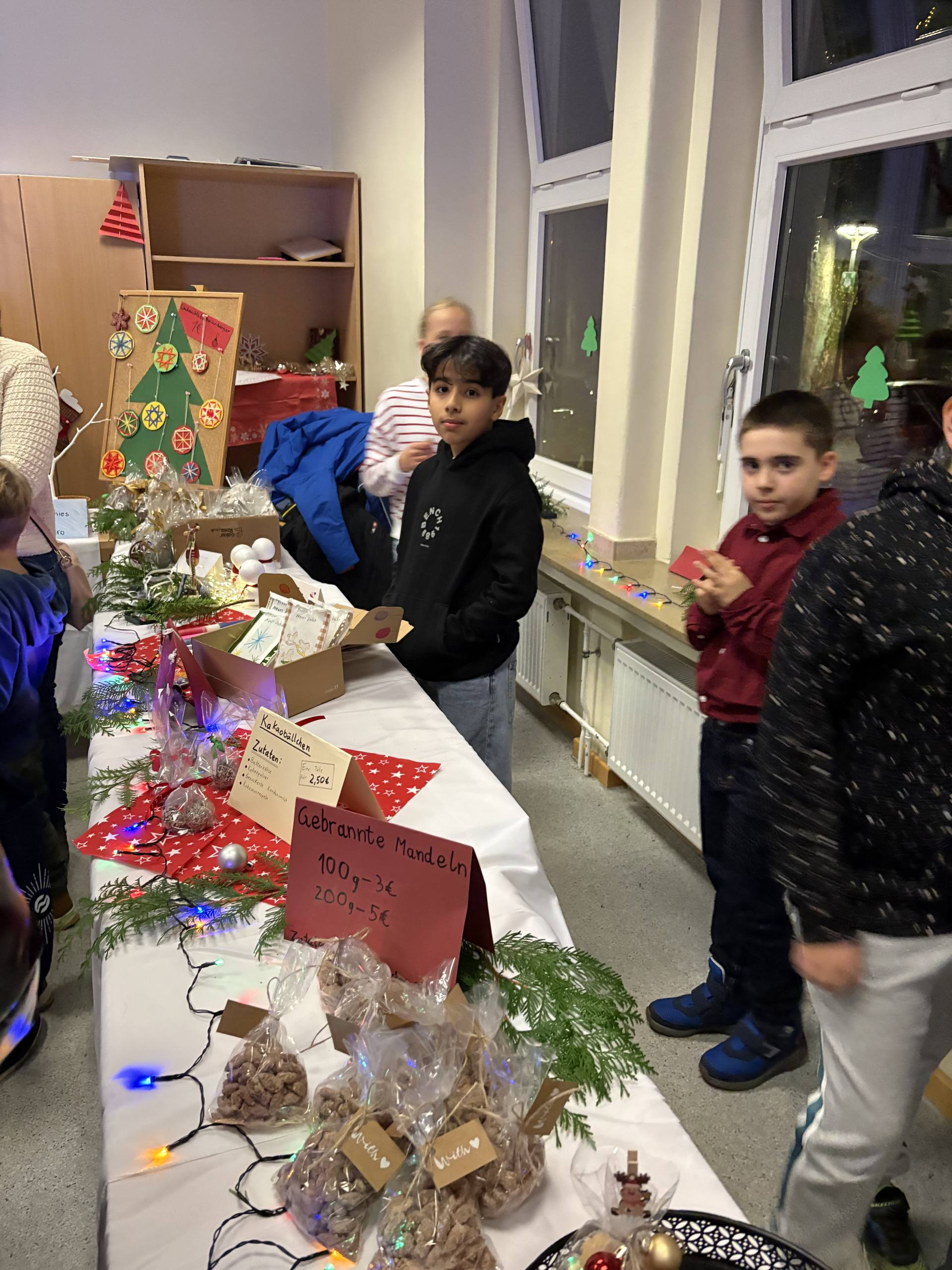 Am Donnerstagnachmittag hat der alljährliche Adventbasar der Jahrgangsstufen 5-6 stattgefunden. Es war auch in diesem Jahr wieder eine wunderschöne Veranstaltung, bei der die Schüler:innen ihre selbstgebastelten und gebackenen Weihnachtsartikel verkaufen konnten. Der Kreativität waren keine Grenzen gesetzt. Highlight war auch in diesem Jahr wieder die Tombola des Fördervereins, für die die Eltern und Schüler:innen in einer langen Schlange anstanden. Vielen Dank für alle Spenden! Der Erlös des Nachmittags wird auch in diesem Jahr wieder der Suppenküche übergeben. Die Klasse, die den höchsten Betrag erzielt hat, darf auch in diesem Jahr den Scheck überreichen!