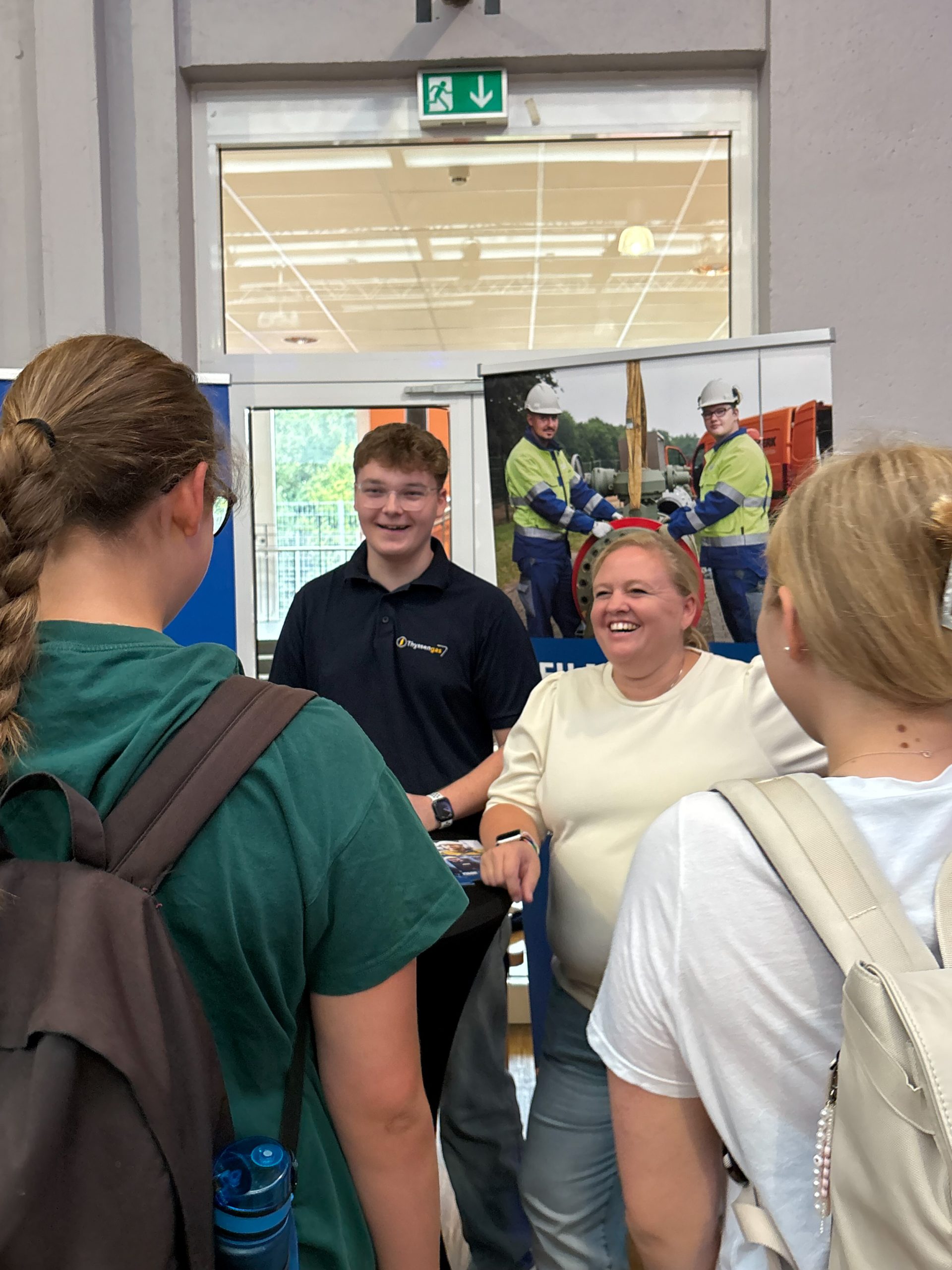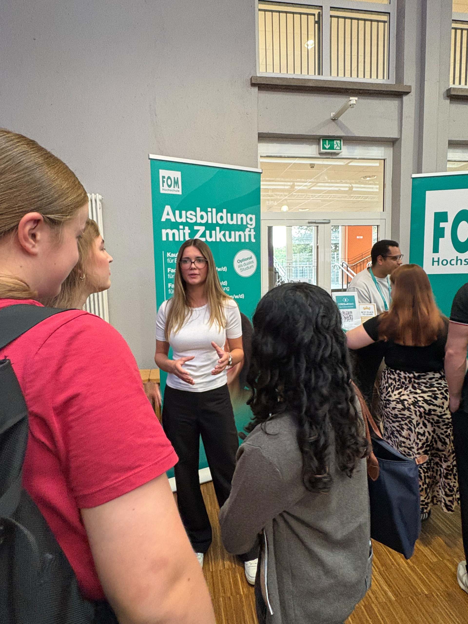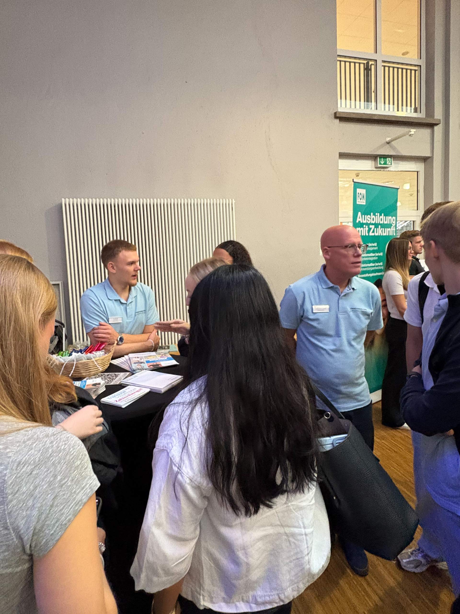 Am 2. Schultag machte die "Ausbildungsoffensive" einen Stopp an der Luisenschule. Azubis des Dienstleisters PVS-Holding, der FOM-Hochschule, die duale Studiengänge anbietet, der Firma Thyssengas und dem Finanzamt zeigten den Oberstufenschüler:innen der Luisenschule auf, wie der Start ins Berufsleben aussehen kann. Moderiert wurde der Talk von Joshua, einem Moderator von Radio Essen. Anschließend gab es noch die Gelegenheit, bei einer Berufsbörse sich quasi auf Augenhöhe mit den Azubis auszutauschen.