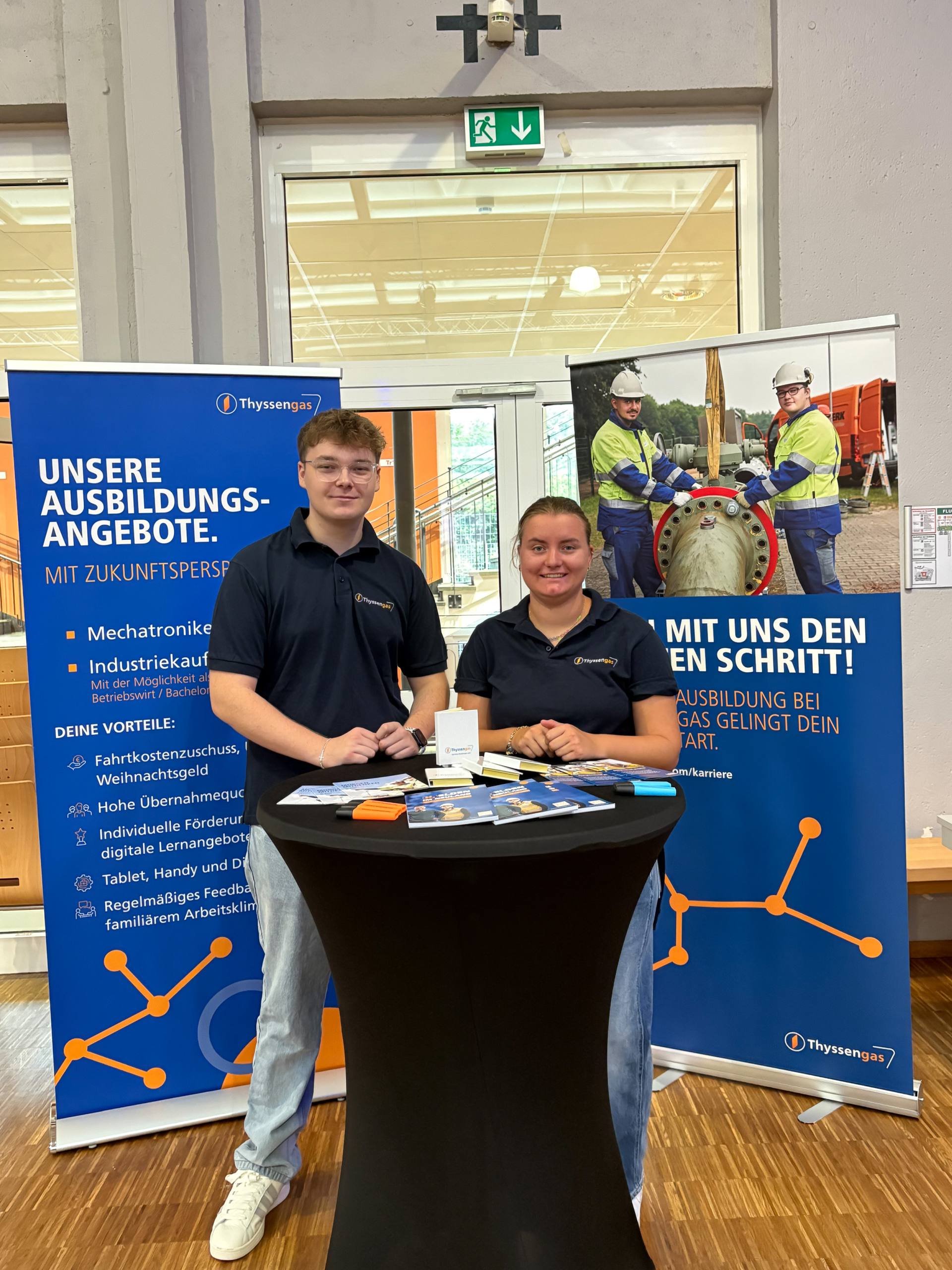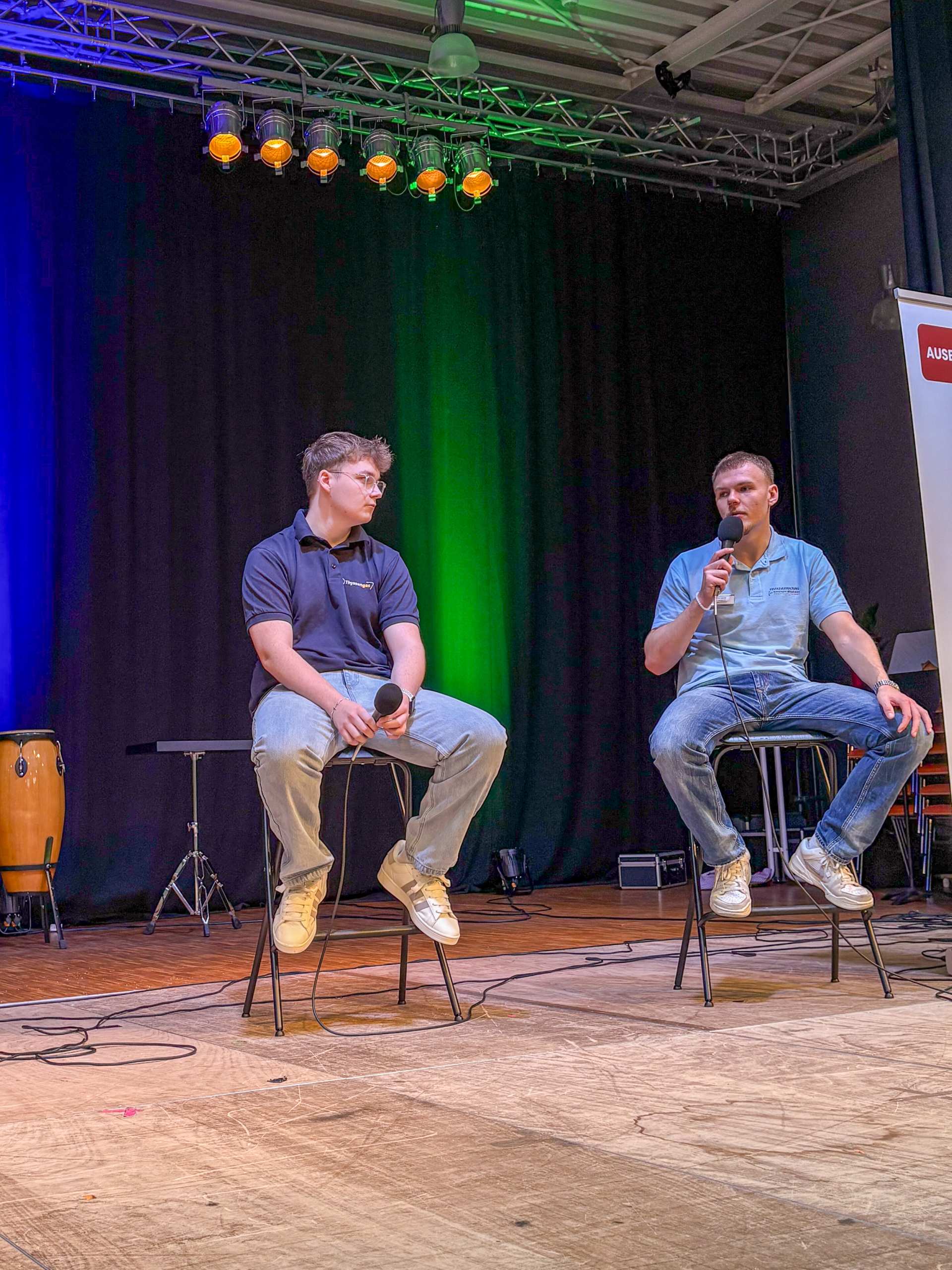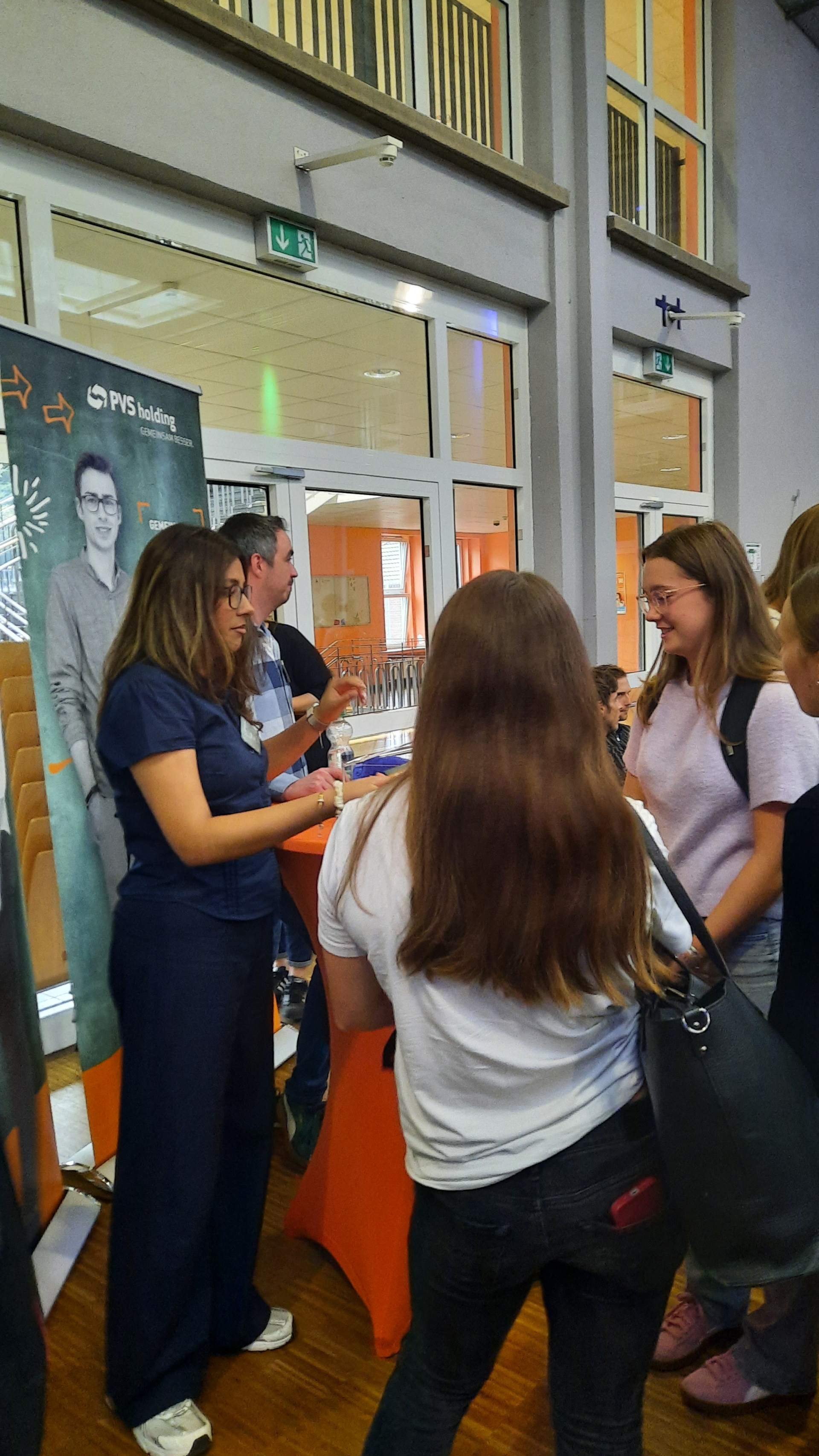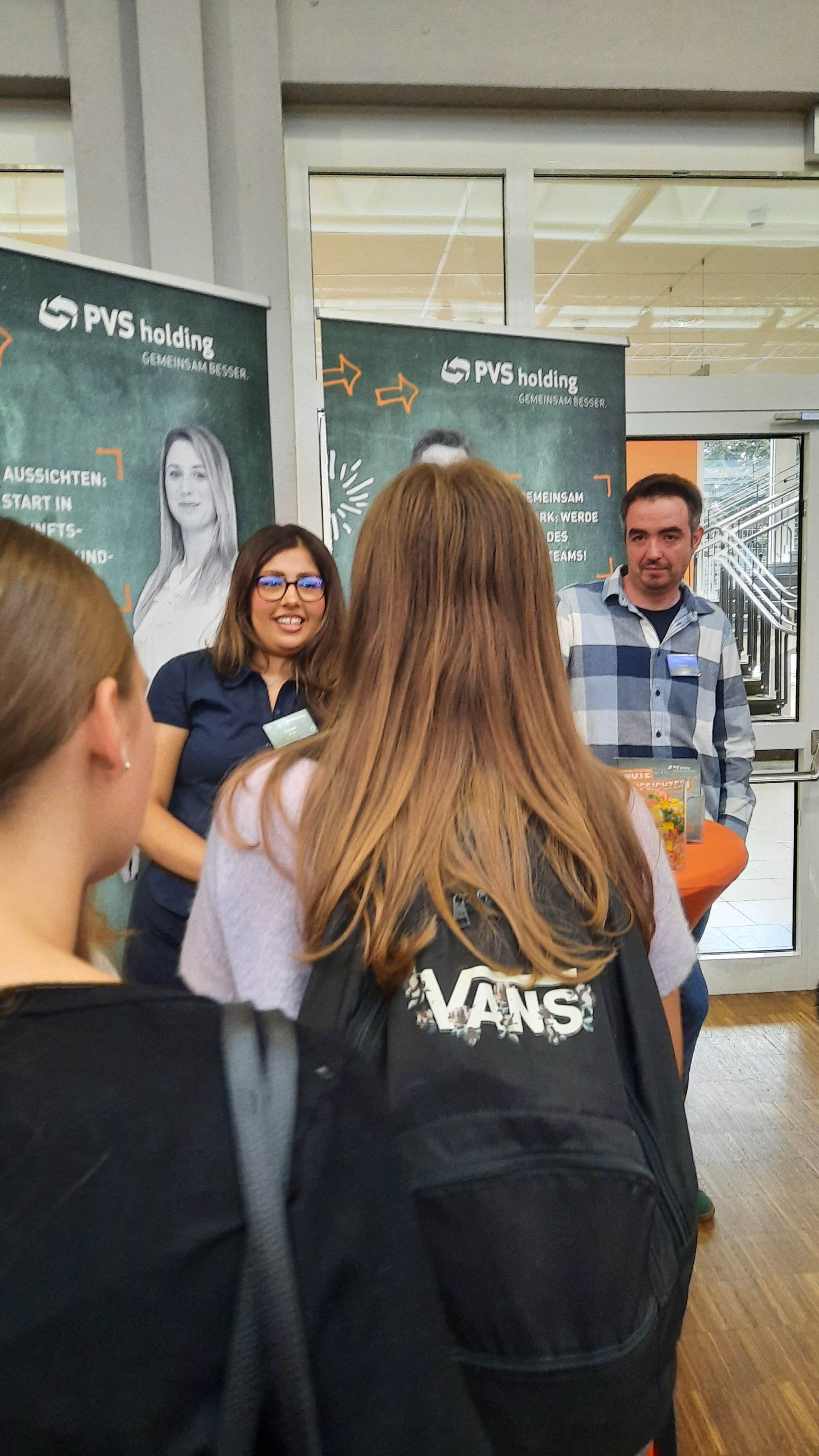 Am 2. Schultag machte die "Ausbildungsoffensive" einen Stopp an der Luisenschule. Azubis des Dienstleisters PVS-Holding, der FOM-Hochschule, die duale Studiengänge anbietet, der Firma Thyssengas und dem Finanzamt zeigten den Oberstufenschüler:innen der Luisenschule auf, wie der Start ins Berufsleben aussehen kann. Moderiert wurde der Talk von Joshua, einem Moderator von Radio Essen. Anschließend gab es noch die Gelegenheit, bei einer Berufsbörse sich quasi auf Augenhöhe mit den Azubis auszutauschen.