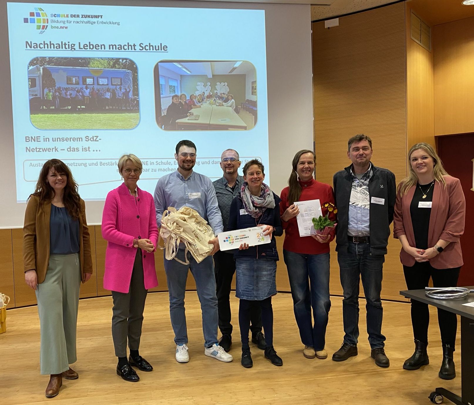 Nach feierlichen Empfangsworten durch NRW-Bildungsministerin Dorothee Feller empfingen wir unsere Auszeichnung und konnten anschließend durch verschiedene Workshops noch in die fachliche Arbeit eintauchen. Schwerpunkt der Arbeit war die Implementierung von Bildung für nachhaltige Entwicklung in die schulischen Strukturen. Neben der fachlichen Arbeit profitierten wir jedoch auch vom Austausch mit den anderen Netzwerken. Gestärkt mit vielen aufschlussreichen Denkanstößen und Impulsen kehrten wir am Nachmittag nach Mülheim zurück und freuen uns auf die weitere Umsetzung von nachhaltigen Projekten im Netzwerk.