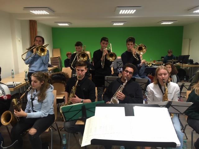 Alle Beteiligten sind mit wachsender Erfahrung und Begeisterung - wenn auch etwas erschöpft- von den Probenfahrten heimgekehrt. Dem Wunsch nach mehr Improvisation kommen wir in unseren wöchentlichen Proben (Juniors: freitags, 13:15h-14:15h und BigBand: freitags, 15:00h-17:00h) nach! Ganz herzlich danken wir Herrn Krugmann für seinen unermüdlichen Einsatz. Die Unterstützung durch unsere Elternschaft beim Abtransport der Instrumente war beeindruckend.