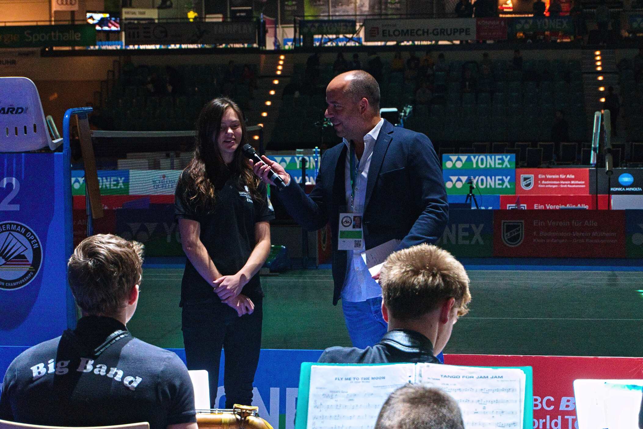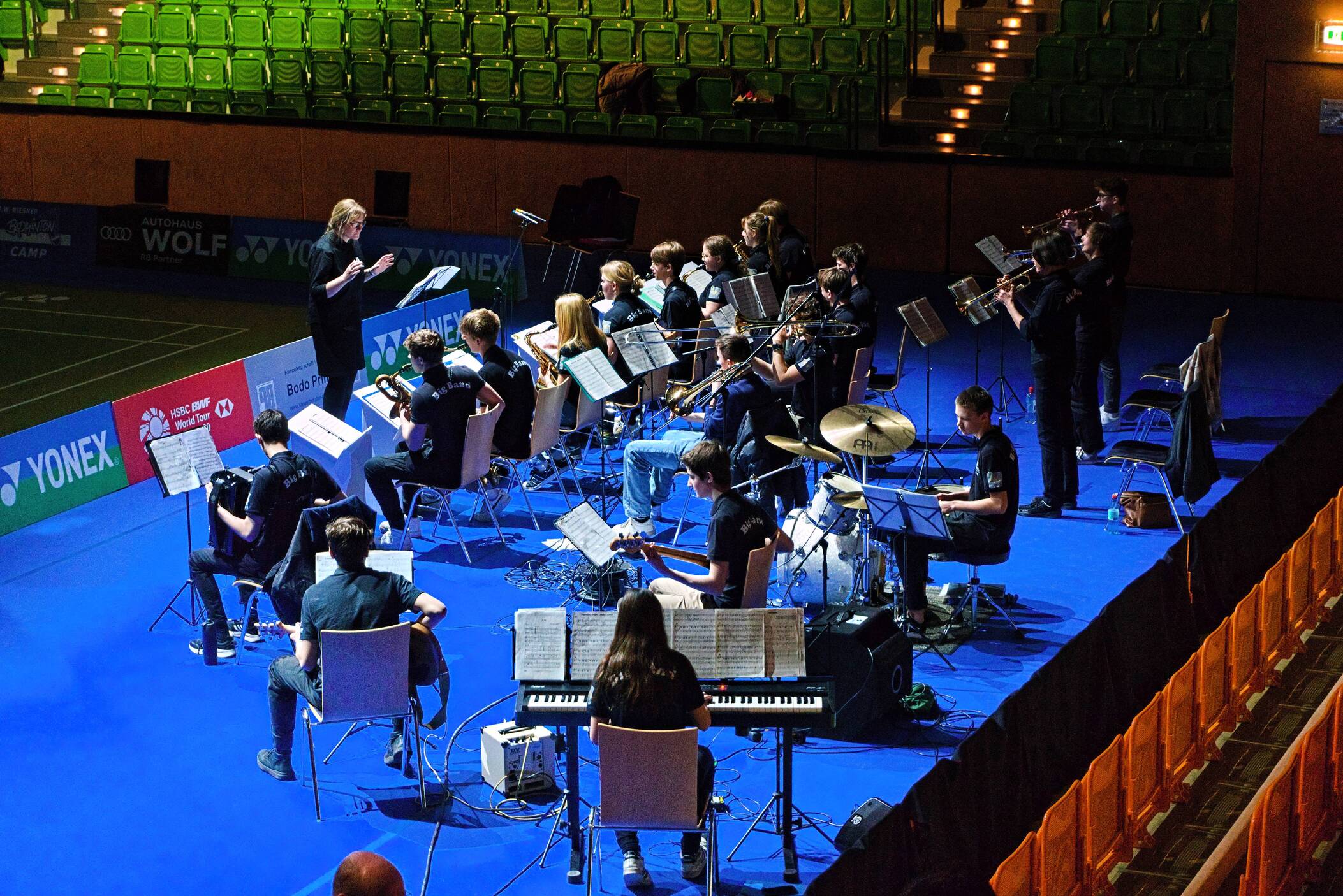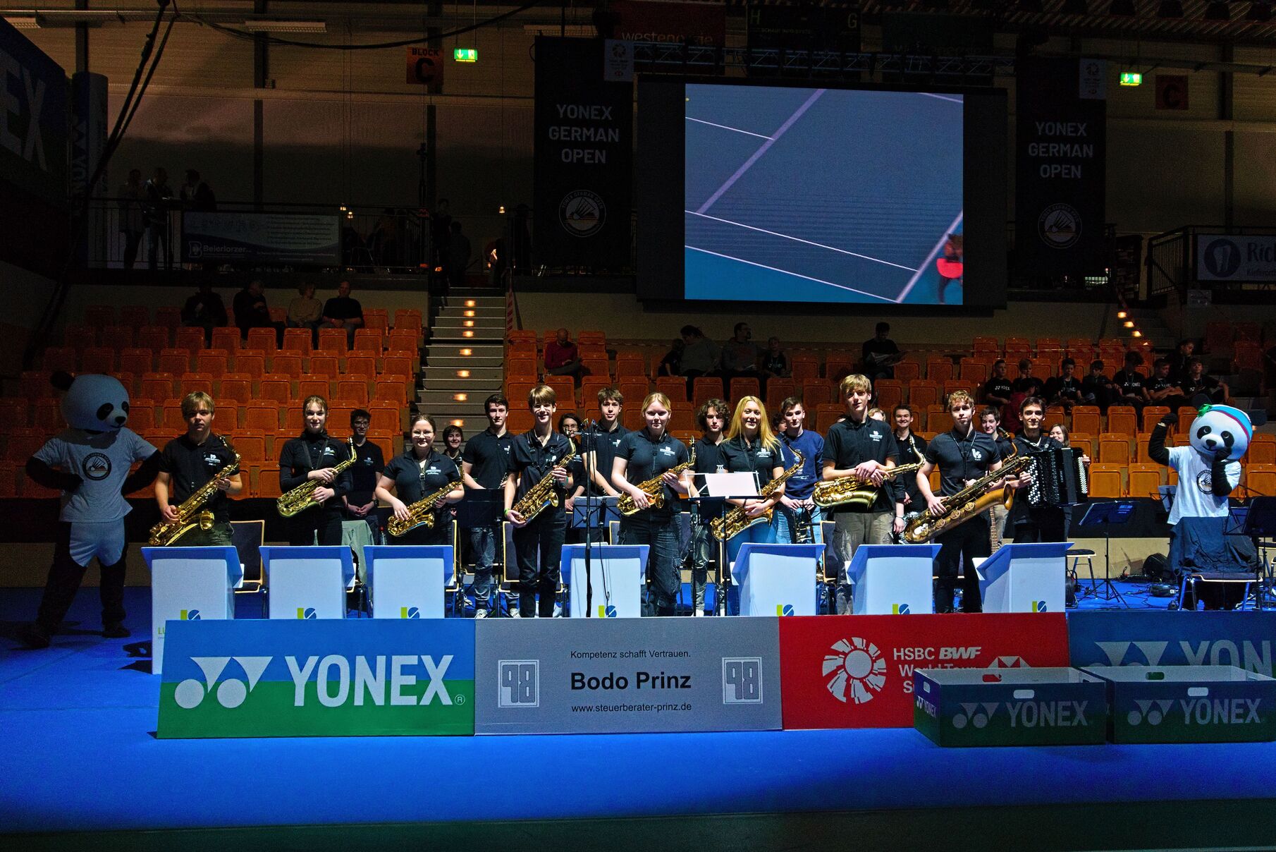 BigBand-Auftritt bei den Yonnex German Open: Zum Auftakt der Halbfinalspiele der Yonnex German Open präsentierte die Big Band der Luisenschule am 11. März 2023 in der Westenergiehalle in Mülheim an der Ruhr ein abwechslungsreiches Programm.