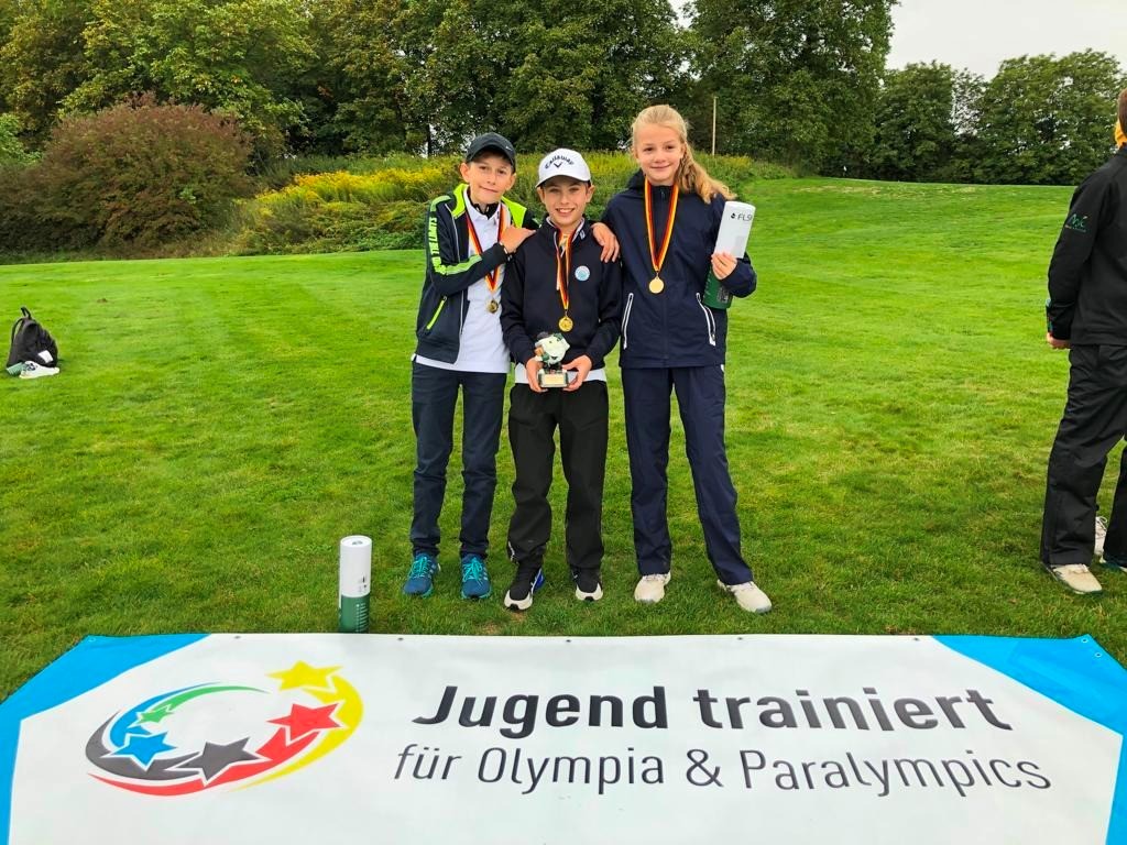 Dass das gesamte Team trotz des Regens nicht wie begossene Pudel dastand, war wetterfester Kleidung, vor allem aber der überragenden Leistung des Teams zu verdanken. Alle drei Teammitglieder – Anna Götz (7e), Tino Salzmann (6a) und Linus Mavroidis (7a) – spielten in Relation zu ihren Handicaps drei exzellente Runden und wurden ebenso überraschend wie verdient Bundessieger im Schulgolf.