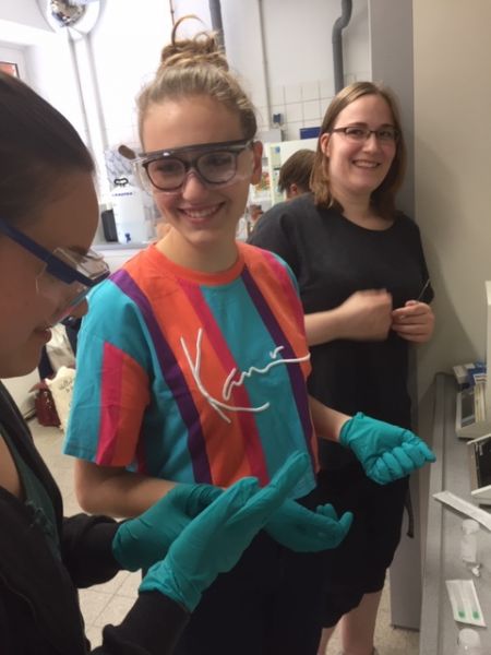 So haben wir in der AG-Stunde davor unsere hergestellte Substanz ordnungsgemäß für die Untersuchung so vorbereitet, d.h. die Proben in NMR-Röhrchen gefüllt, in einem deuterierten Lösungsmittel gelöst und sicher verschlossen, dass die Röhrchen schon ins MPI gebracht werden konnten.