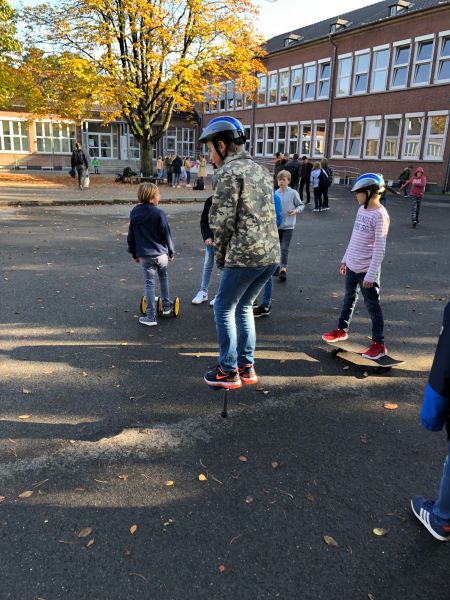 Mit Beginn des Schuljahres 2019/20 ist die ,,Bewegte Pause“ an der Luisenschule gestartet. Schülerinnen und Schüler der Klassen 5 und 6 konnten sich zunächst Dienstags und Donnerstags in der 1. großen Pause Spielgeräte ausleihen, um dann alleine oder in einer Gruppe die Bewegungsangebote nutzen zu können. Die Rückmeldung und Nachfrage aus der Schülerschaft war sehr positiv, sodass die Bewegte Pause noch vor den Herbstferien auf die Jahrgangsstufe 7 ausgeweitet wurde. Mittlerweile findet die Bewegte Pause drei Mal in der Woche statt. Nach den Herbstferien wird es zeitnah zudem ein Bewegungsangebot für die Jahrgangsstufe 8 in der Mittagspause geben.