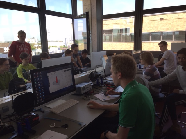 Am 14.5, 17.5 und 7.6 2018 waren wir mit 16 Schülerinnen und Schülern der JS 7-Q2 und Frau Schulte nachmittags an der Hochschule Ruhr-West und haben dort im neuen IoT-Labor an zwei Workshops zum Thema 3D-Druck und einem Workshop zum Thema Mikrochip-Programmierung teilgenommen.