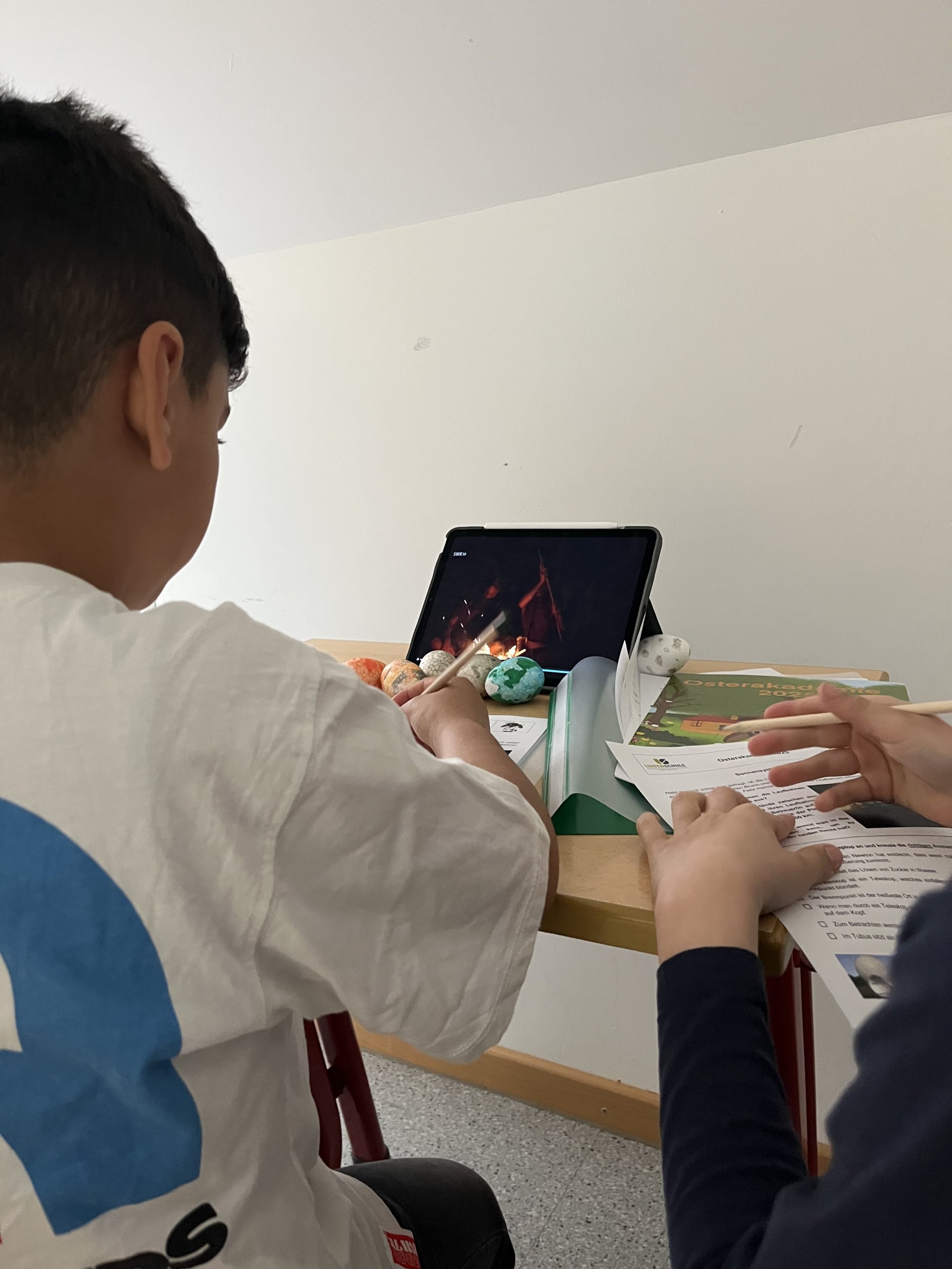 Wie schon seit der ersten Osterakademie ist der Vormittagsteil des Dienstags dem Haus Ruhrnatur gewidmet. Damals noch als Exkursion durchgeführt, sind wir nun schon seit mehreren Jahren stolz darauf, das Haus Ruhrnatur, den Aquarius und neu auch den Nabu hier an der Luise als Gast empfangen zu dürfen. Der Tag startete mit einem kleinen Vortrag von Frau Krohn vom Haus Ruhrnatur in der Aula. Anschließend wurden die Kinder in fünf rotierenden Workshops auf eine Reise zum Ökosystem Ruhr mitgenommen. Mit Anschauungsobjekten, lebenden Tieren und Mikroskopen bekamen die Kinder die Möglichkeit den biologischen Bereich der MINT-Fächer näher kennenzulernen. Selbstverständlich stand auch hier das Ei immer im Vordergrund: Sind alle Eier gleich? Was gibt es für verschiedene Eier? Welche Tiere legen Eier? Wie groß können Eier werden? Was ist ein Windei?