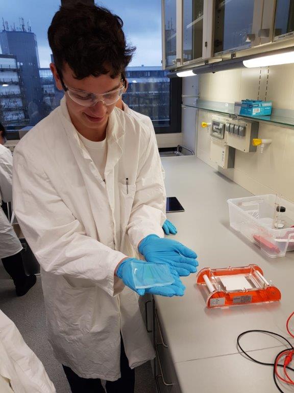 Meiner Meinung nach war die Exkursion sehr spannend und lehrreich. Dadurch, dass wir die PCR sowie die Gelelektrophorese bereits im Unterricht besprochen hatten, konnten wir durch die eigenständige Durchführung in der Universität den Vorgang zum Nachweisen der Allergene besser nachvollziehen und verstehen. Gleichzeitig konnten wir Berufseinblicke in die Labortätigkeit gewinnen. Wir danken den Mitarbeitern des Lehr-Lern-Labors.