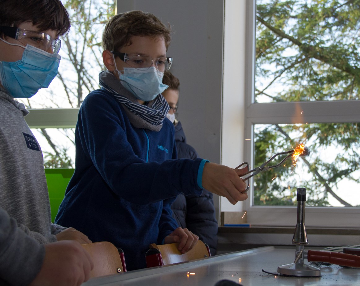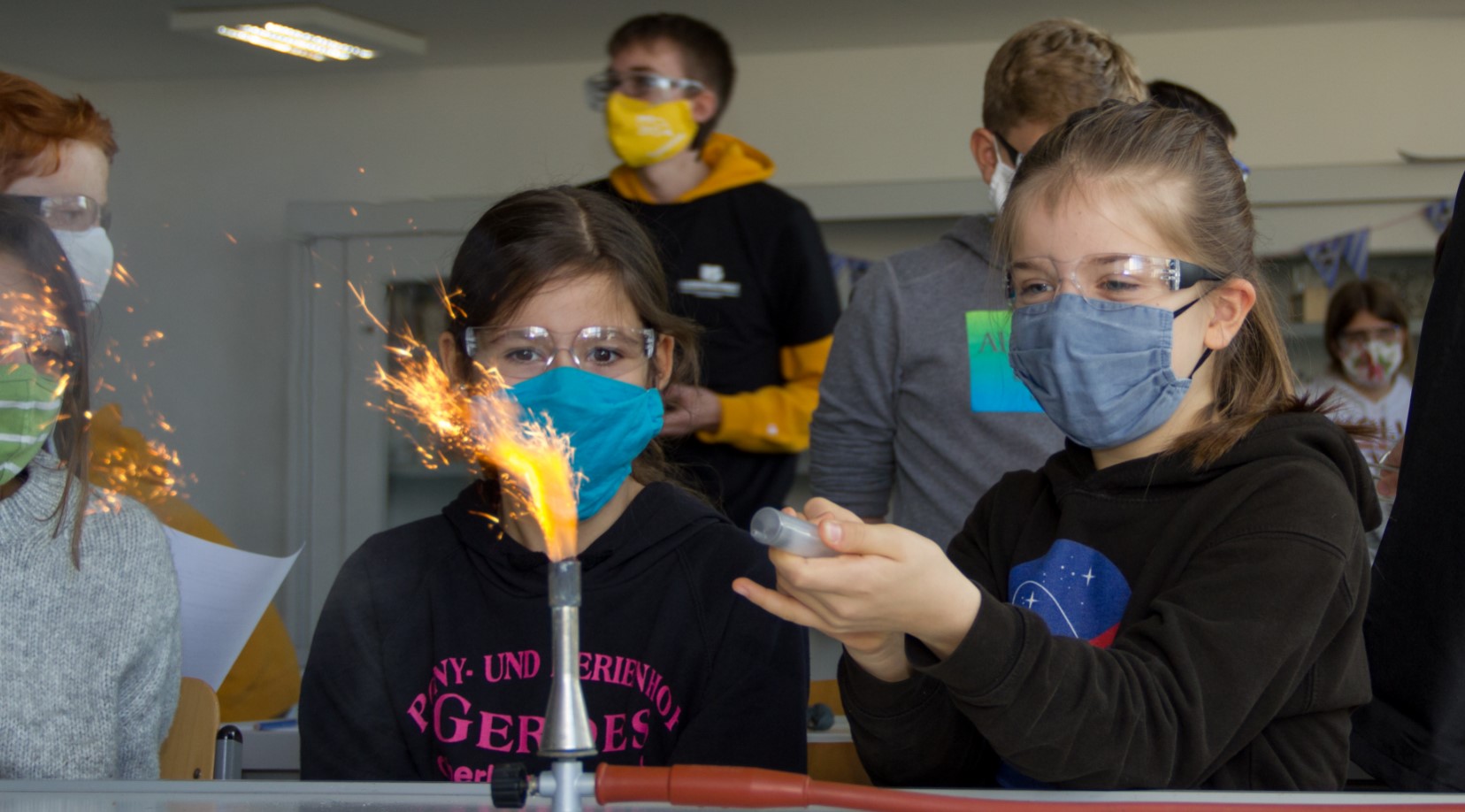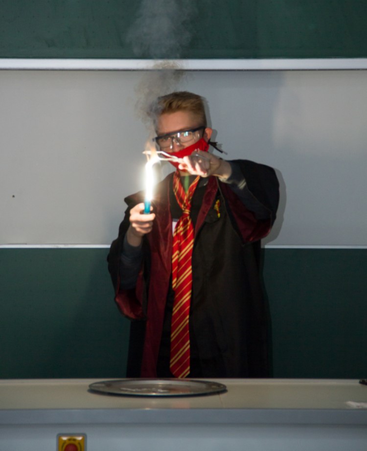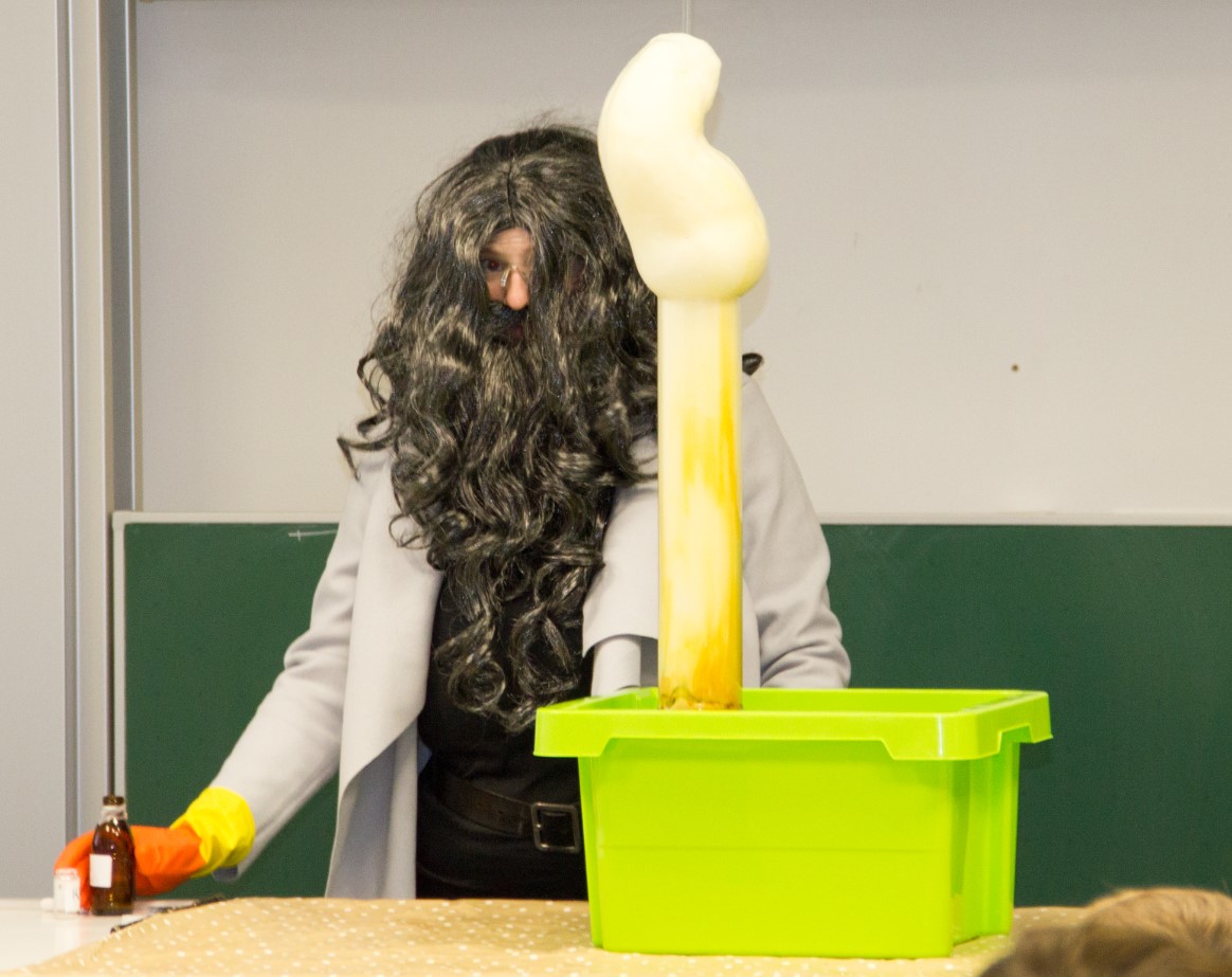 Auch dieses Jahr hat der Chemie-Projektkurs der Q1 von Frau Dr. Schulte einen Experimentiervormittag für Viertklässler vorbereitet. Immer freitags werden die Grundschulkinder für 90 Minuten in eine chemische Wunderwelt entführt. Das Thema, das sich der Projektkurs dieses Jahr ausgesucht hat, ist Harry Potter. Hierfür wurden Kostüme zusammengestellt, magische Experimente eingeübt und vorbereitet, Plakate gemalt und sogar Hogwards-Schutzmasken genäht. Wenn die Grundschüler an unserer Schule ankommen, werden sie direkt zu Beginn von Harry Potter, alias Maxim, begrüßt, der sie dann zu den Chemieräumen, in die Schule der Zauberlehrlinge, führt. Dort erwartet sie erst einmal eine selbst entwickelte, feurige Experimentalshow. Hier treten verschiedene Charaktere aus den Harry Potter-Büchern auf, die den Viertklässlern atemberaubende Experimente demonstrieren. Von Hermine und Ron über Draco, Hagrid und Prof. Snape – alles sind dabei. Unter anderem sorgen die restlos verbrennende Wolle der Feuerschafe aus Hagrids Garten und der leuchtende Tannenbaum sowie die Zahnpasta für die Hypogreifen für Begeisterung bei den Kleinen. Danach verteilen sich die Grundschulkinder auf drei Räume, um für die restliche Zeit unter unserer Anleitung selbst zu experimentieren. Bei den Räumen handelt es sich um unsere zwei Chemieräume und um eine geheimnisvolle Dunkelkammer. In diesen Räumen finden die Viertklässler eine Vielzahl unterschiedlicher Experimente vor. Hier können die Kinder beispielsweise Wunderkerzen, Geheimschriften, Raketen, Vulkane, magische Zaubertränke und -pulver und noch vieles mehr selbst machen und entdecken. Zu jedem Experiment wurden Arbeitsblätter vorbereitet, die eine Geschichte rund um Harry und seine Freunde, kleine Aufgaben für die Schüler und eine Erklärung für das jeweilige Experiment enthalten. Die Grundschüler können am Ende des Zauberlehrgangs ihren vom Projektkurs vorbereiteten Hefter mit den Arbeitsblättern mit nach Hause nehmen. Zum Abschluss werden ihnen noch Urkunden ausgehändigt, die sie als Meisterzauberer ausweisen. Außerdem bekommen sie noch eine kleine Überraschung überreicht, aber mehr wird nicht verraten.