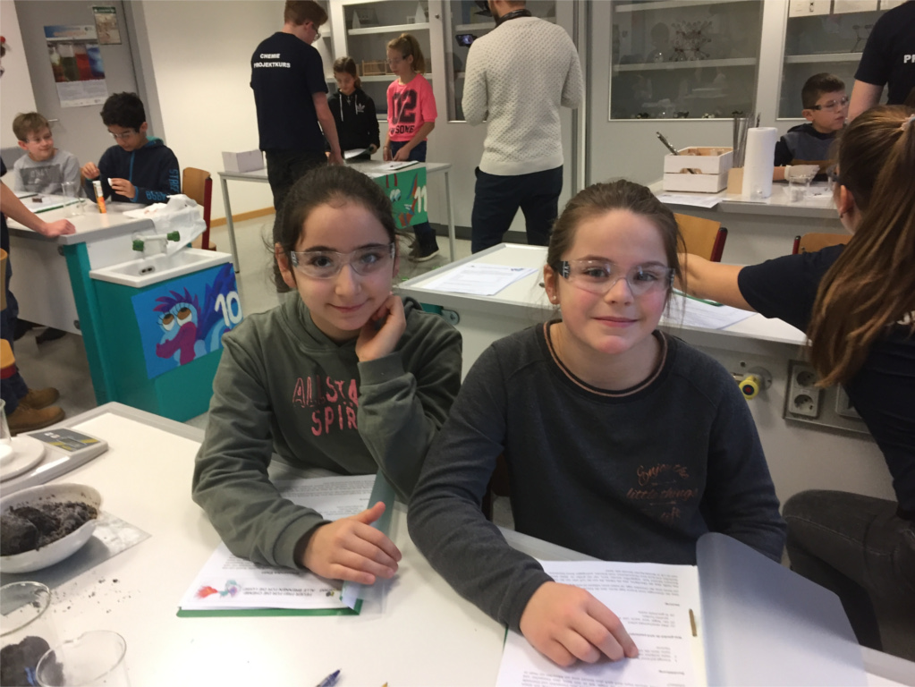 Seit Anfang des Schuljahres haben wir zusammen mit Frau Dr. Schulte, die den Kurs leitet, an dem Projekt gearbeitet. Wir mussten erst einmal einige spannende Experimente finden, die mit Feuer zu tun hatten und gleichzeitig darauf achten, dass diese auch für Kinder geeignet sind. Dann haben wir die Experimente so vorbereitet, dass die Kinder selbst experimentieren können und gemeinsam mit uns die chemischen Grundlagen erarbeiten und verstehen können. Um das Ganze außerdem noch schöner für die Kleinen zu gestalten, haben wir uns auch eine passende Geschichte mit zwei Drachenzu den Experimenten ausgedacht. In der Geschichte möchte der feuerspeiende Drache Silvester seine Freundin Luise durch feurige Experimente aufmuntern, da sie das Feuerwerk an Silvester verpasst hat.