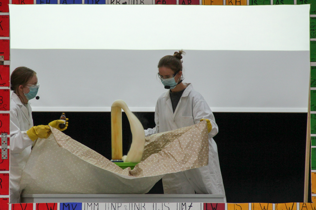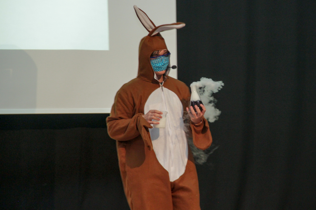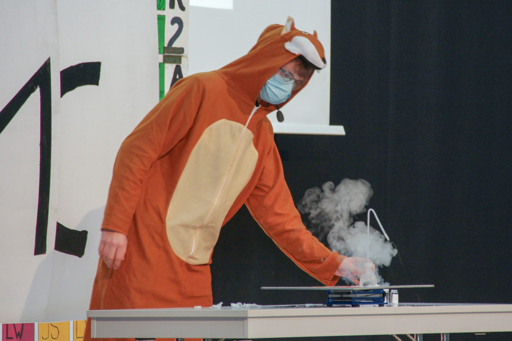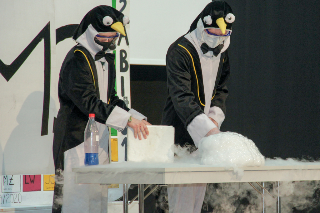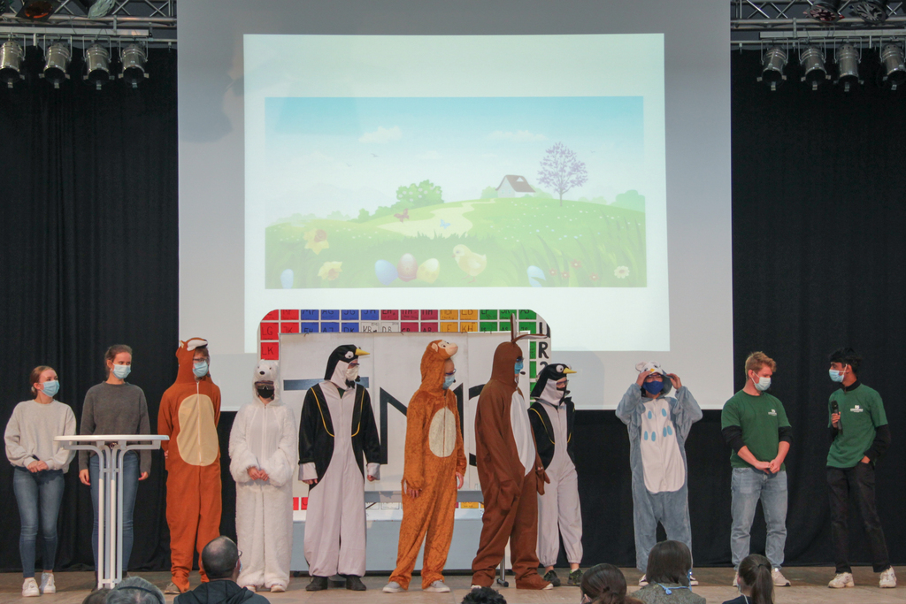 Als Abschluss der drei Forschertage haben die Projektkursschüler eine zauberhafte Experimentalshow rund um den Osterhasen Stups, der an einem Experimentalwettbewerb teilnehmen wollte, für die Grundschüler vorbereitet. Die gleißend weiß leuchtende Flamme eines Magnesiumbandes oder rauchende exotherme Reaktionen konnten sie sehr beeindrucken und das Abschlussprogramm ist ihnen sicherlich in guter Erinnerung geblieben. Zum Abschluss gab es noch ein großes Dankeschön an das zdi-Netzwerk Mülheim, welches die Forscherakademie großzügig unterstützt hat, sowie Urkunden und kleine Geschenke für die Kinder und auch die freiwilligen Helfer haben als Dankeschön einen von RWW gesponsorten Geschenkbeutel und Urkunden bekommen. So sind die drei Forschertage zu Ende gegangen sind, und wir Großen waren stolz auf unser gemeinsames Projekt, welches nur durch die tolle Teamarbeit so gut funktioniert hat, und die Kleinen hatten sicher jede Menge Spaß und haben gelernt, wie vielfältig MINT sein kann.