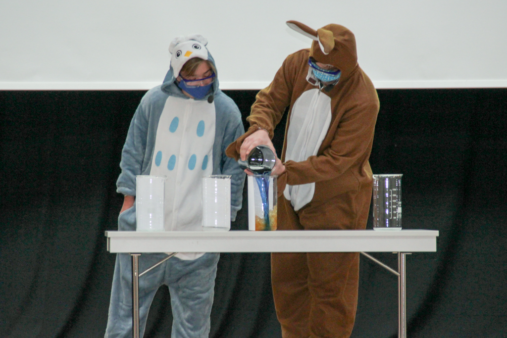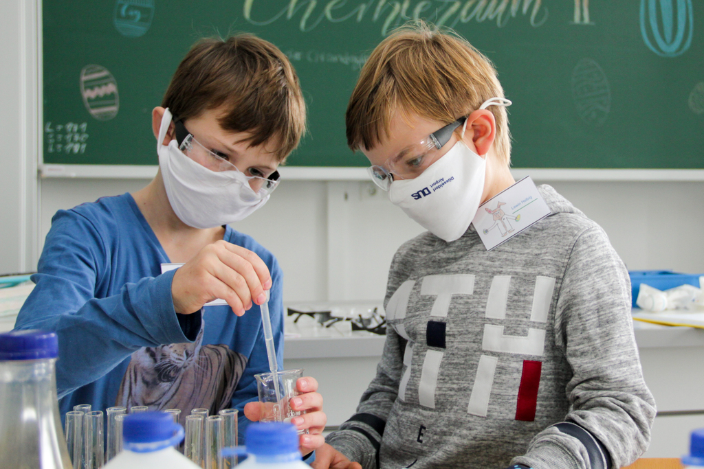 „Das Gelbe vom Ei – Nachwuchsforscher eilen vorbei“ - unter diesem Motto hätte vom 6.4. bis zum 8.4.2020 die Osterakademie 2020 für engagierte Drittklässler/innen, die besonderes Interesse an den Naturwissenschaften zeigen, stattfinden sollen. Wie alles in dieser Zeit sind auch die Forschertage dem Corona bedingten Lockdown zu Opfer gefallen. Da die Chemieprojektschülerinnen und -schüler der damaligen Jgst. Q1, der jetzigen Q2, unter Leitung von Frau Dr. Schulte, allerdings bereits viel Zeit und Mühe in die Organisation verwendet haben und die Grundschulkinder schon voller Vorfreude waren, war aber schnell klar, dass die Osterakademie nachgeholt wird. So konnten die Nachwuchsforscher doch herbeieilen – "Corona-konform" mit Maske – und vom 13.10. bis zum 15.10.2020 erforschen, wieviel MINT im Ei steckt.