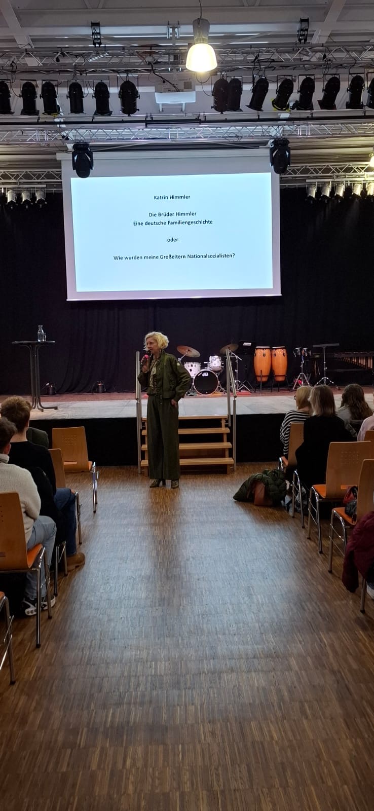 Am 25. November 2025 bekam die Luisenschule Besuch von Katrin Himmler. Sie ist die Großnichte von Heinrich Himmler, einer der Hauptverantwortlichen des Holocausts. Organisiert wurde die Veranstaltung im Rahmen des Geschichtsunterrichtes von Frau Dr. Schulte. Zwei Stunden lang wurde Geschichte für ca. 150 Schüler:innen der zehnten Klassen lebendig.