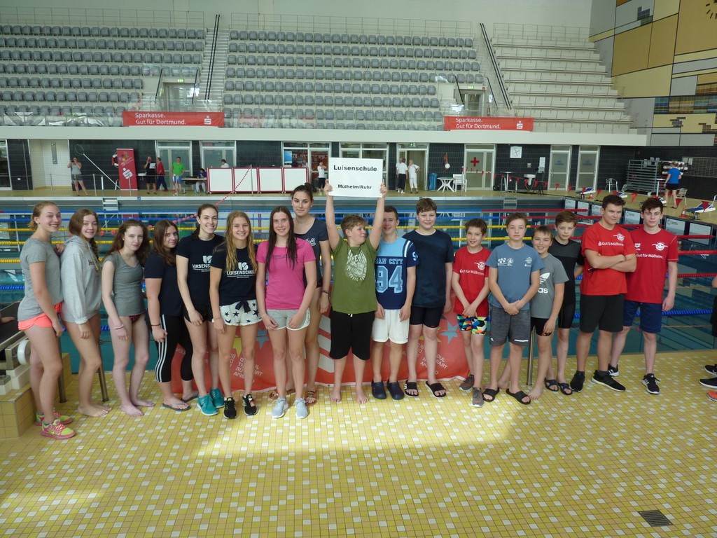 Sowohl die Schwimmmannschaft der Jungen als auch das Team der Mädchen hatten sich im Vorfeld als viert- bzw. drittschnellste Mannschaft unter 104 Schulen in NRW für das Landesfinale in Dortmund qualifiziert.