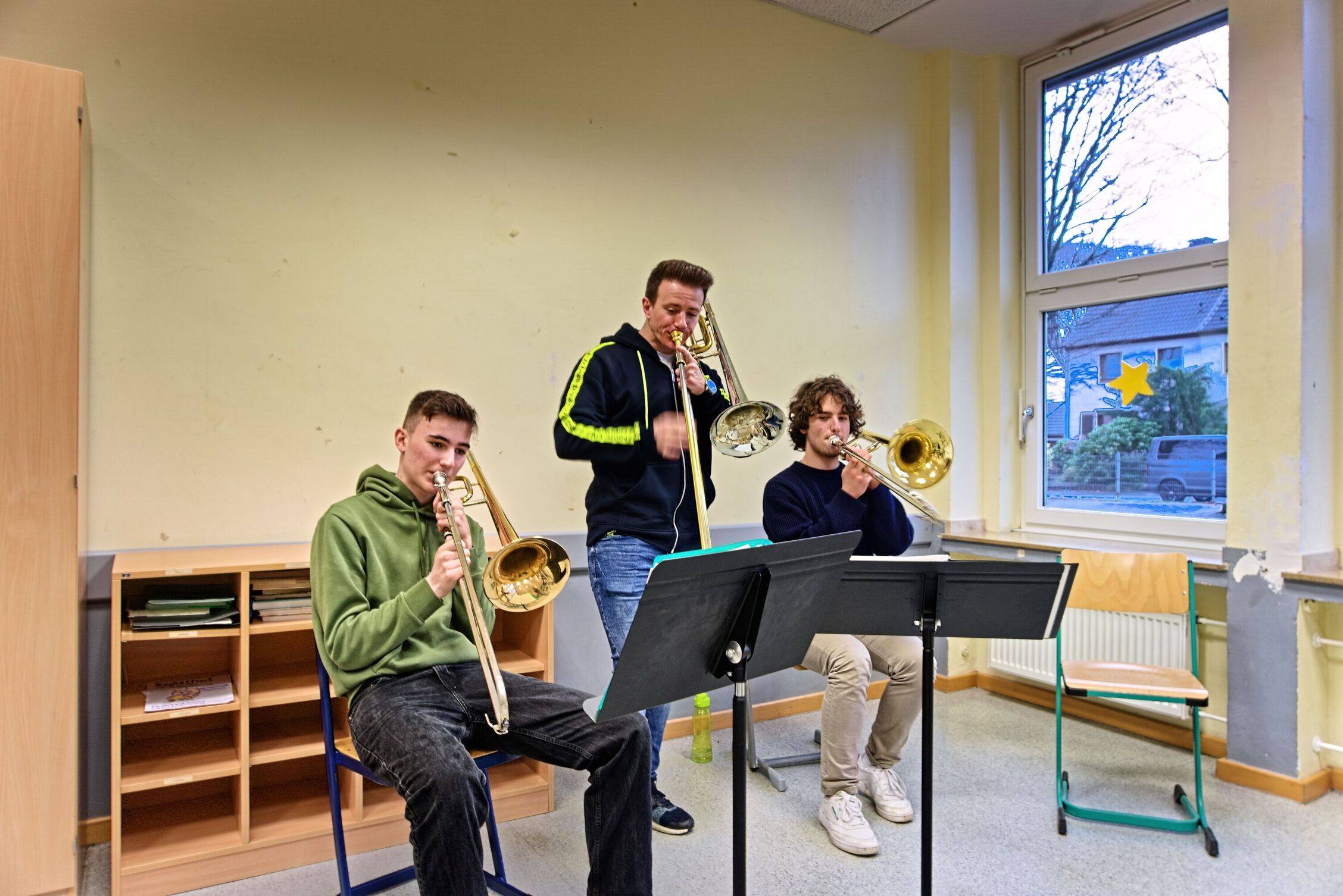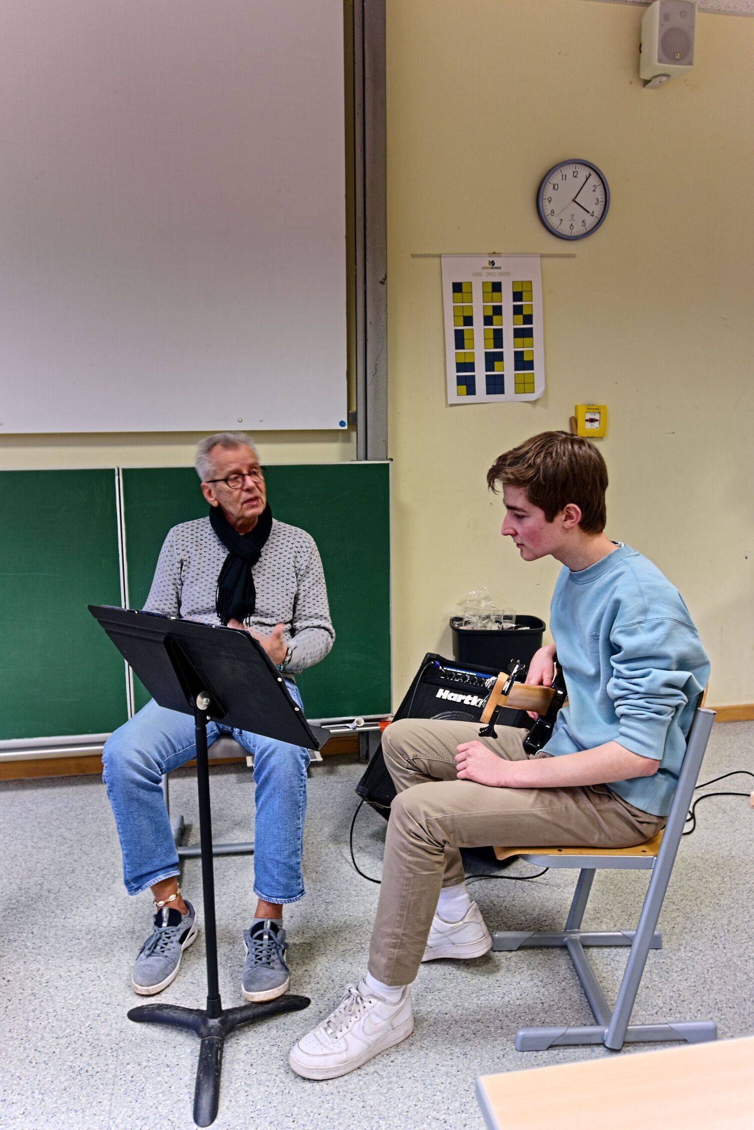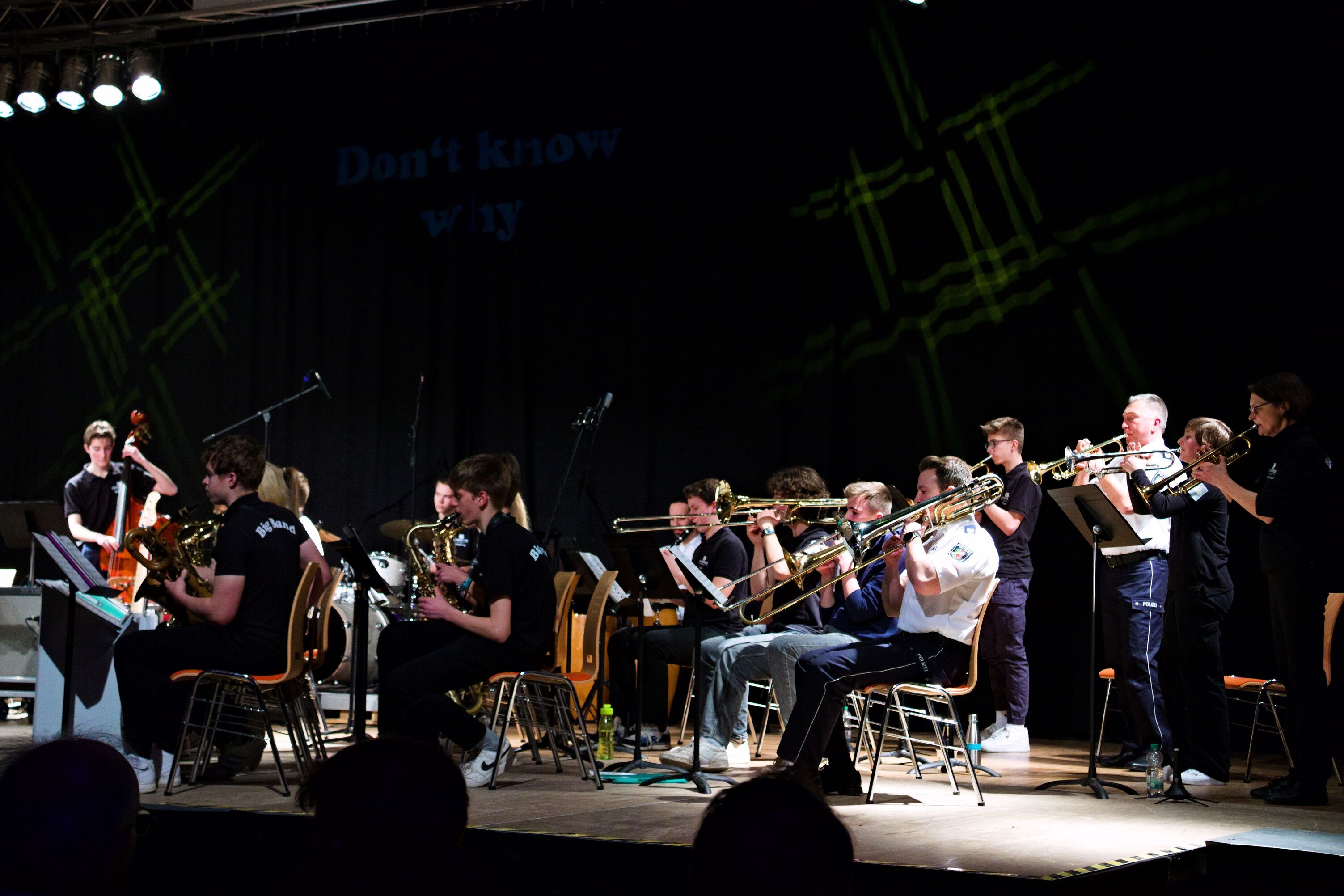 Zur Vorbereitung unseres gemeinsamen Auftritts traf sich unsere BigBand zunächst mit den Profimusikern und -musikerinnen des LPOs zu einem Wochenend-Workshop in der Luisenschule. An diesen zwei Tagen spielten wir uns nicht nur gegenseitig Stücke vor, sondern wir bekamen als Bigband der Luisenschule die besondere Gelegenheit, von dem Können des Polizeiorchesters zu profitieren. Innerhalb von Satzproben übten wir in kleinen Instrumentalgruppen unsere Bandstücke mit den Profimusikern gezielt ein. Zum Schluss spielten wir gemeinsam die Lieder durch. Das Coaching hat richtig viel Spaß gemacht und die beiden Probentage mit der JazzRockPop Band gingen wie im Flug vorbei.