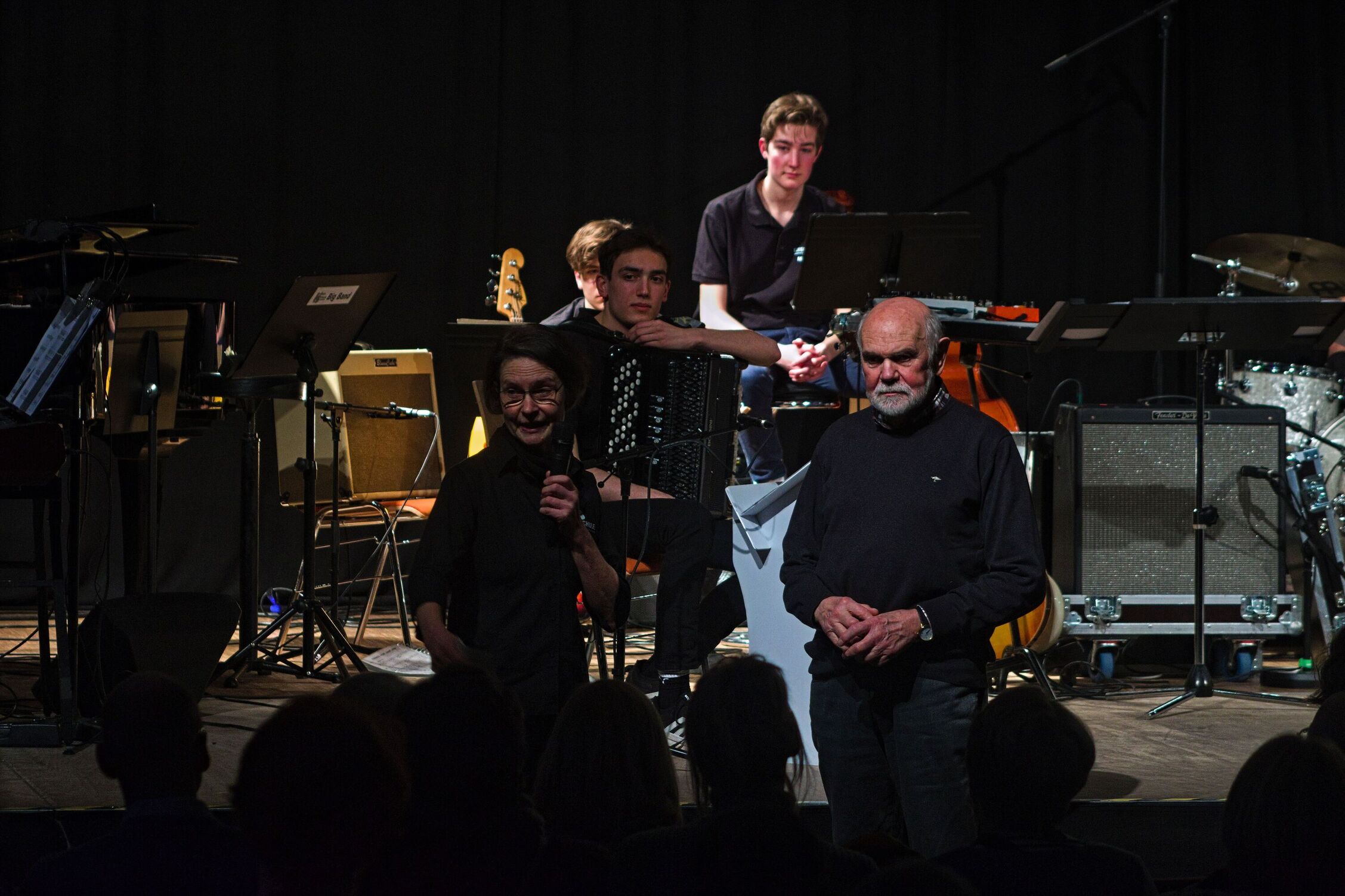 Unser gemeinsamer Auftritt mit dem Landespolizeiorchester NRW fand unter dem Motto „2 inconcert“ statt. Im ersten Teil des Abends spielte die BigBand der Luisenschule die Stücke zusammen mit der JazzRockPop Band des Polizeiorchesters. Es war ein tolles Erlebnis mit so erfahrenen Musikern auf der Bühne zu stehen – aber auch sehr aufregend: schließlich wollte niemand einen Fehler machen! Am Ende des ersten Konzertteils überreichte uns Herr Mons vom Jazzclub Mühlheim an der Ruhr eine Trompete aus dem Vermächtnis von Helmut Schlitt.