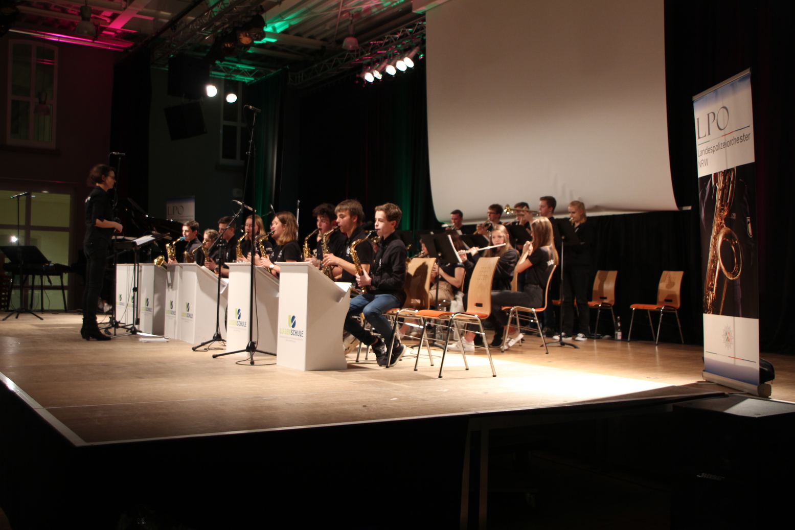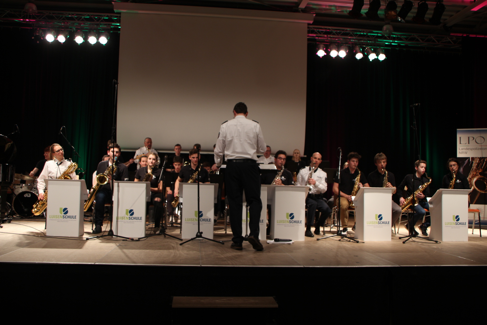 Die Ergebnisse der gemeinsamen Probenarbeit wurden in einem Konzert am 29.01.2020 in unserer Aula präsentiert. Den zweiten Teil dieses Konzertes bestritt das LPO NRW mit seinem eigenen Repertoire. Der Dirigent Hans Steinmeier unterstützte beide Bands. Zu Gast war außerdem der Sänger Joe Doll, der die Zuhörer begeisterte. Gespielt wurde eine Auswahl alter so wie neuer Jazzstandards. Auch das Publikum hatte die Möglichkeit, sich aktiv durch Mitsingen und Tanzen zu beteiligen.