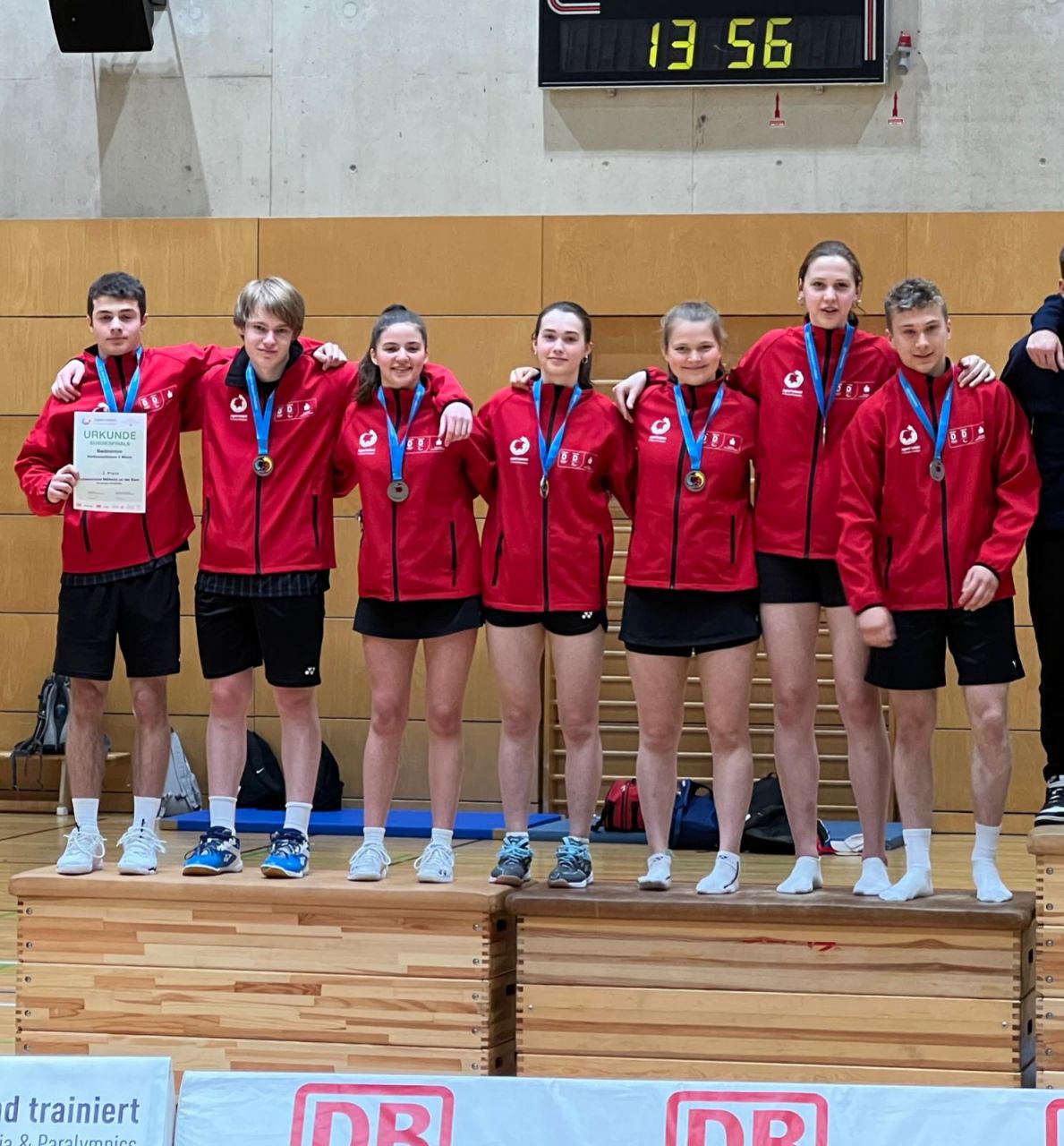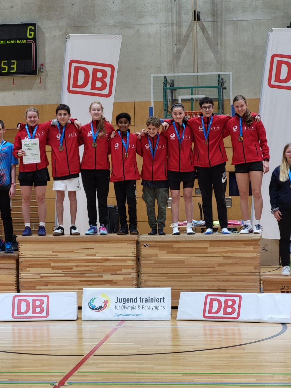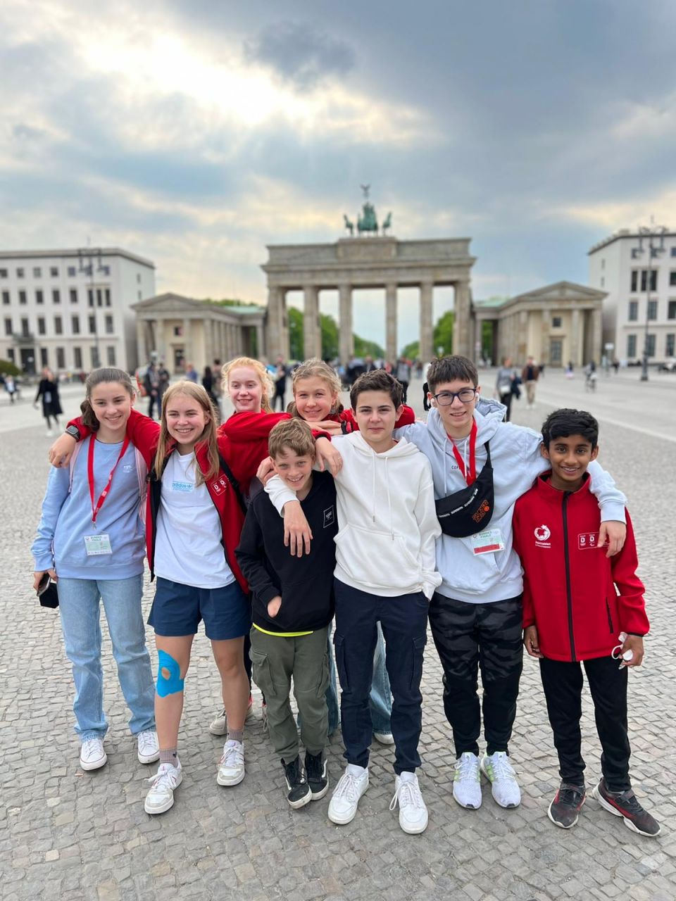 Nachdem die letzten Jahre JtfO coronabedingt ausfallen musste, war ich dieses Jahr als Badmintonspielerin das erste Mal mit dabei. Voller Vorfreude ging es für uns Dienstagmorgen nach dem Frühtraining zum Bahnhof. Die vierstündige Zugfahrt, auf der wir schon andere Schulmannschaften gesehen haben, verging wie im Flug. Am Berliner Hauptbahnhof angekommen mussten wir nur noch auf unsere Akkreditierung warten und dann ging’s schon weiter mit der Bahn zum Hotel. Am Anreisetag stand nur noch ein kurzer Besuch der Max-Schmeling Halle an, zu der wir uns am nächsten Morgen aufmachten, um unsere ersten Teamspiele zu bestreiten. Der Weg zur Halle und zurück war definitiv ein Highlight, das mir besonders in Erinnerung geblieben ist. Mit guter Stimmung und lauter Musik sind wir Tag für Tag zwischen Halle und Hotel hin und her gependelt. Neben zunächst weniger spannenden Vorrundenspielen gab es auch noch Zeit mit dem ganzen Team essen zu gehen und ein wenig die Hauptstadt zu entdecken. Am Finaltag war die Spannung dafür umso größer. Selbst Herrn Krause konnte man ansehen, wie sehr wir den Sieg gegen Hamburg wollten. Die Stimmung bei den ersten Spielen der Begegnung war unglaublich. Der Zusammenhalt und die Unterstützung untereinander hat uns nach zwei Doppeln einen Spielstand von 1:1 gebracht, wobei das Herrendoppel leider sehr knapp verloren ging. Auch wenn wir in den folgenden Spielen nur noch das Dameneinzel gewinnen konnten, blieben die Stimmung und der Spaß erhalten. Mit dem Sieg der jüngeren Wettkampfklasse konnte das verlorene Finale der Älteren etwas ausgeglichen werden und der Fokus lenkte sich auf die anstehende Abschlussfeier. Ein Zwischenstopp im Hotel und es ging wieder zurück zur Partylocation, wo die Siegerehrung und anschließende Feier stattfanden, bei der Marie unser Team grandios auf dem Podest präsentierte. Nach der Feier ging es gemeinsam, inklusive Karaokeeinlage in der Bahn, zurück ins Hotel. Am nächsten Morgen nahmen wir dann die Rückfahrt auf uns, die anders als die Hinfahrt hauptsächlich zum Schlafen genutzt wurde und eine unvergessliche Berlinfahrt vollendete.