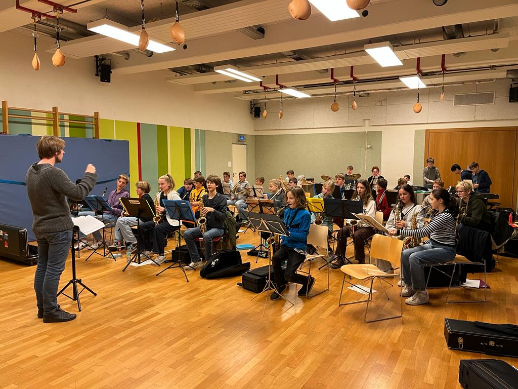 Nach dem Schulalltag begann am Montag um 15.00 Uhr der erste Probenabschnitt. Gegen Abend unterstütze dann noch Merlin Hellenkamp, Jazzschlagzeuger und ehemaliger Schüler der Luisenschule, die Probenarbeit und studierte mit der Band den „Basin Street Blues“ ein. Der Dienstag gliederte sich vormittags in eine gemeinsame Probe und nachmittags teilte sich die Band auf, um in Satzproben schwierige Stellen zu üben. Am Abend wurde dann wieder gemeinsam geprobt. Nach einem langen Probenblock am Mittwoch beschloss die Juniorband die Fahrt mit einem gemeinsamen Mittagessen.