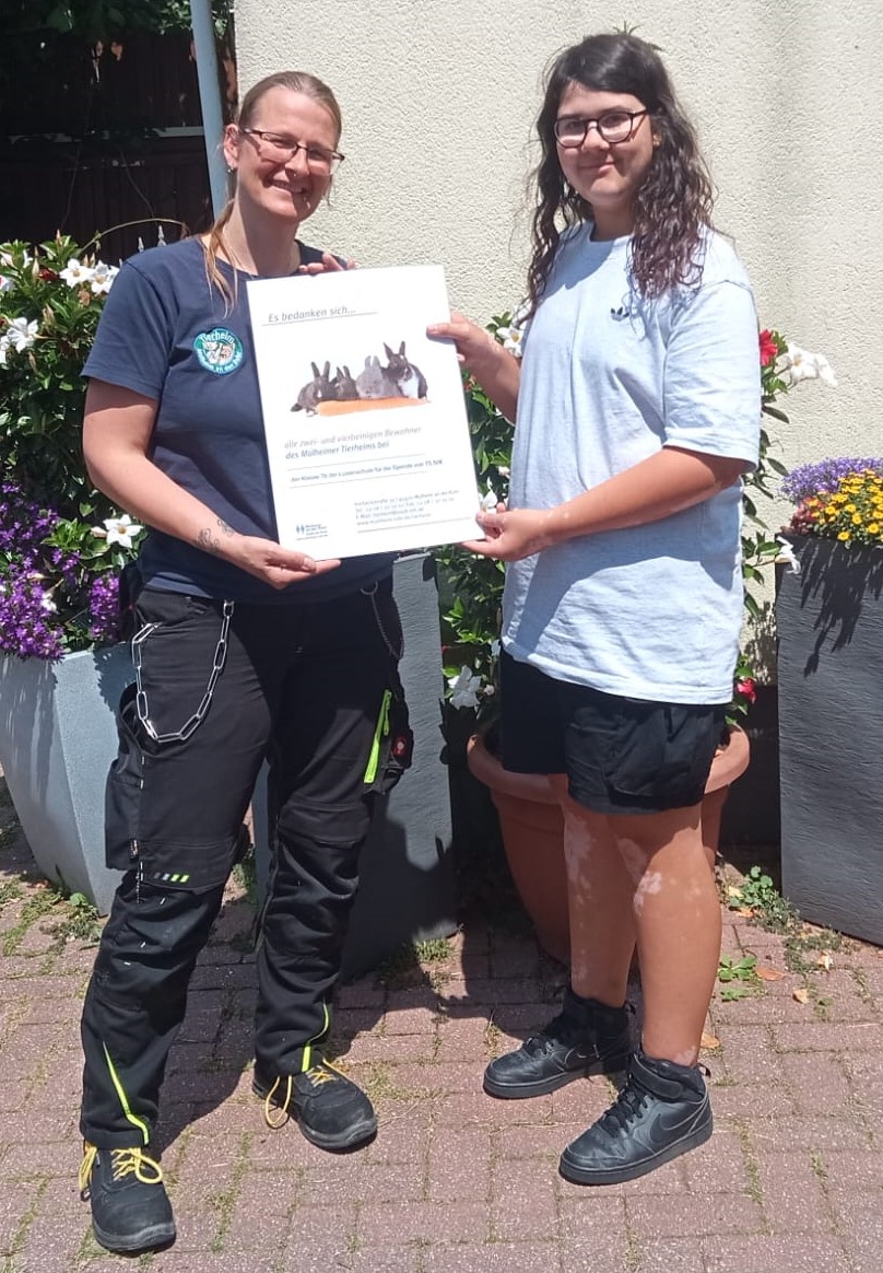 Kurz vor den Ferien hat die Klasse 7b aus eigenem Antrieb eine Waffelverkaufsaktion gestartet, um Geld für einen wohltätigen Zweck zu sammeln. Das Tierheim in Mülheim konnte sich über 75,50 € freuen. Wir freuen uns über das Engagement und das Übernehmen von sozialer Verantwortung der Klasse 7b (nun 8b).