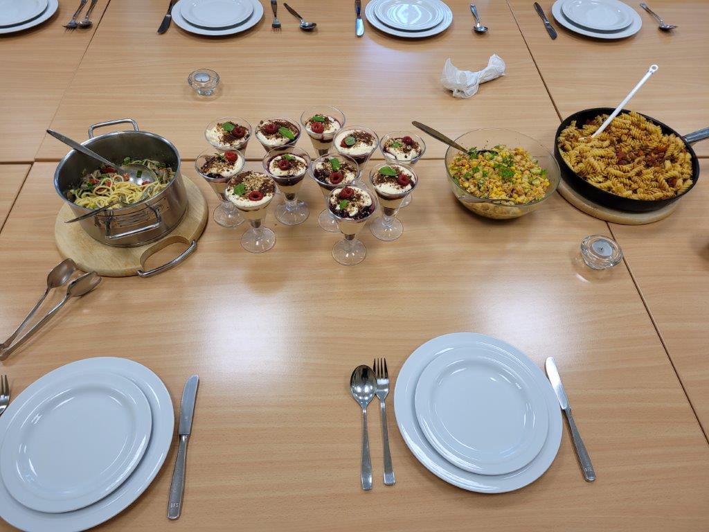 Meiner Meinung nach ist dies eine tolle Idee, da wir somit die Möglichkeit haben, das Gelernte in der Praxis zu erproben. Das Berufskolleg bietet sich hervorragend an, mit ausreichend Platz und Raum für unsere Taschen sowie das gemeinsame Essen. Man kocht in Dreier-Gruppen, sodass die Arbeit passend aufgeteilt wird. Es wird nicht langweilig und macht Spaß in Teams das Thema „Kohlenhydrate” zu erarbeiten. Man kocht nicht nur sondern lernt zusammen spannende Informationen über Ernährung und wie sie dem Körper gut tun.