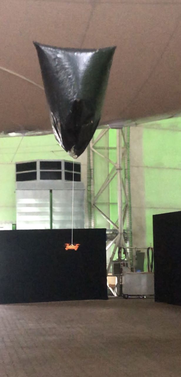 Obwohl auch für den Antrieb verschiedene Modelle, wie E-Fuels oder Brennstoffzellen, im Gespräch waren, entschieden wir uns schließlich zur Forschung an einem elektrobetriebenen Luftschiff. Dazu bauten wir zunächst als Modell eine kleine Drohne, die wir später, um mehr Ballast tragen zu können, mit einem Solarluftschiff, einer Art von der Sonne erwärmten Heißluftballon, verbanden. Vor allem das Experimentieren rund um das Zusammenführen dieser beiden Komponenten war sehr spannend, da wir eine stabile Verbindung schaffen mussten, und die Drohne das Solarluftschiff nicht mit den Rotoren zerschneiden durfte. Dabei gab es viel Trial-and-Error, wobei wir viele Ballons zerschredderten oder bei einem Versuch mit Helium im Dach des Luftschiffhangars verloren.