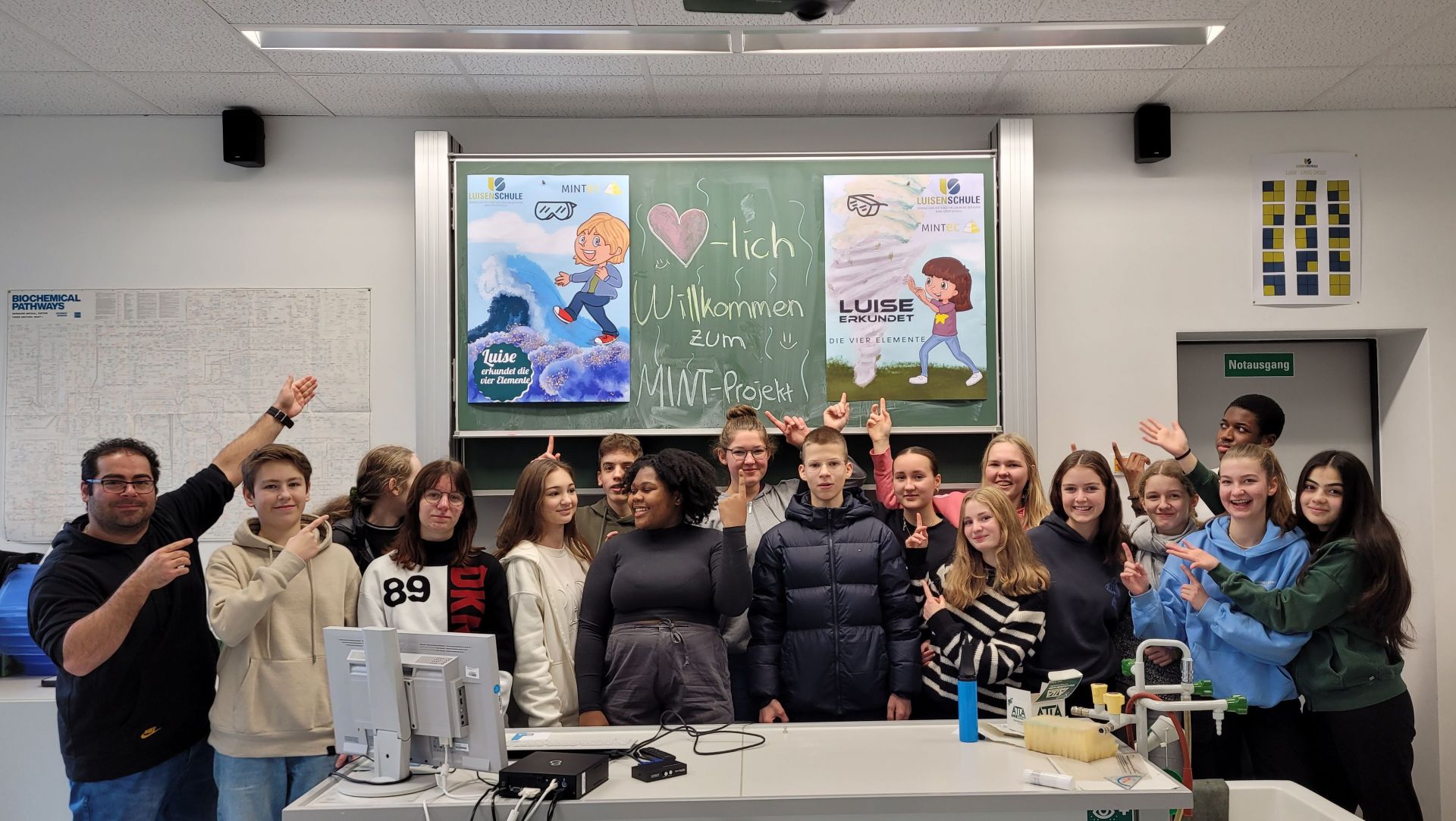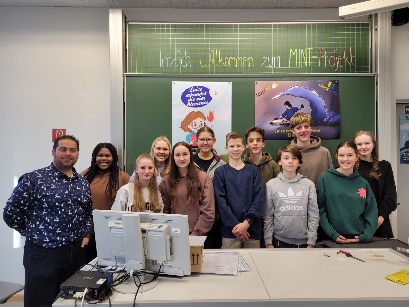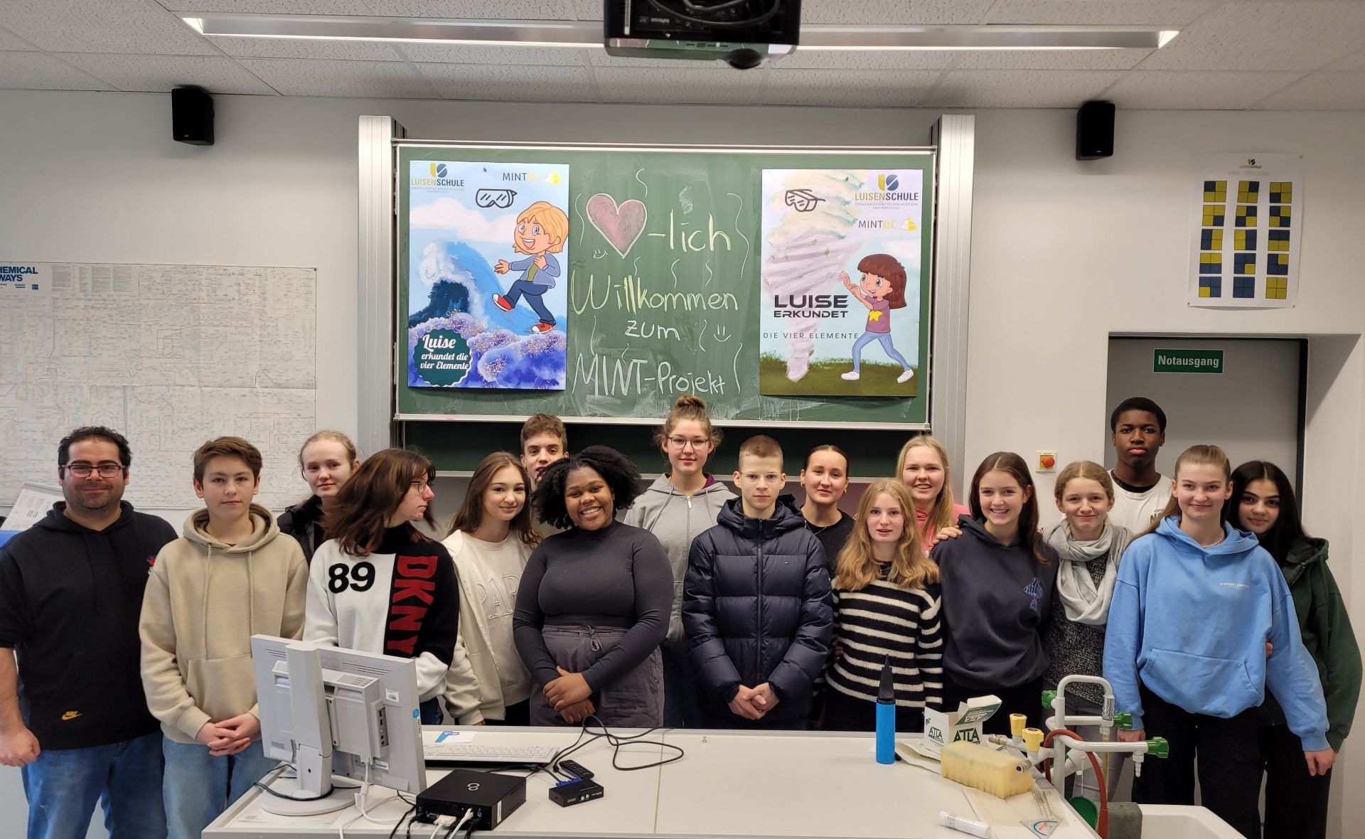 Seit Mitte Dezember haben sich Schüler:innen der Jahrgangstufe 9 an drei Donnerstagen, jeweils von 14-16 Uhr, für das MINT- Projekt von Herrn Durmuş engagiert. Wir haben gemeinsam mit 65 Viertklässler:innen von verschiedenen Mülheimer Grundschulen rund um die vier Elemente Wasser, Luft, Erde und Feuer experimentiert und geforscht. So färbten wir beispielsweise mit Zinkpulver Feuerflammen blau und lernten mit Bunsenbrennern umzugehen. Zusammen haben wir auch herausgefunden, wieso Gummibärchen im Wasser groß werden und wie man Stärke in Lebensmitteln nachweisen kann.