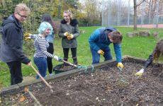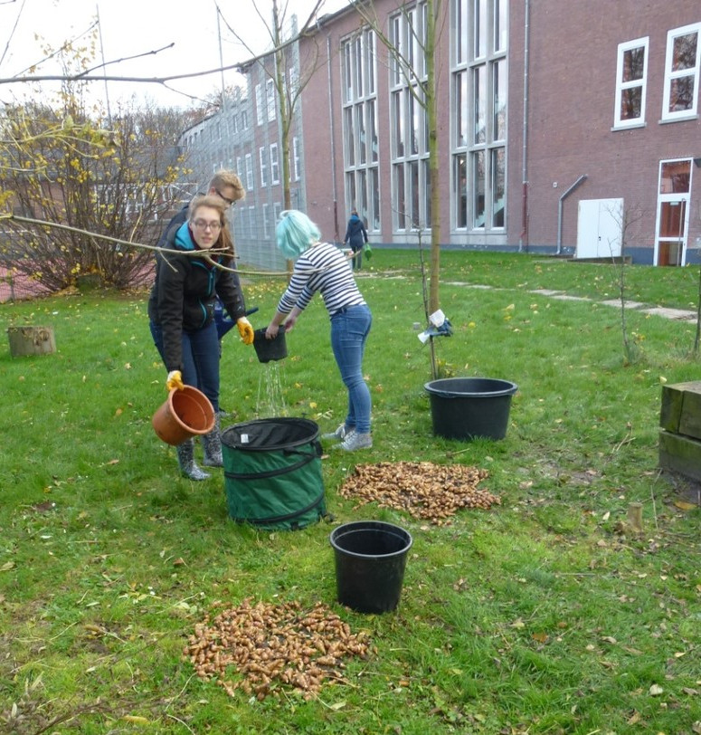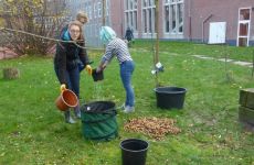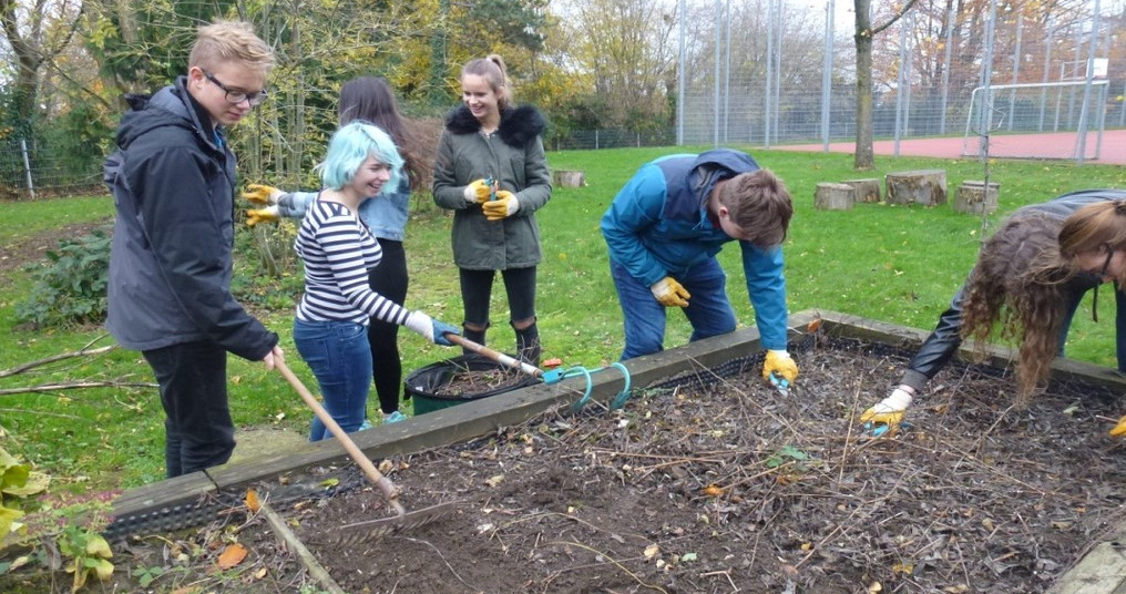 Traditionell zum Adventsbasar bot die Umwelt AG wieder ihr selbst angebautes Topinambur zum Verkauf an: Wie schon in den letzten Jahren wurden Ende November im Schulgarten die Sproßknollen von Helianthus tuberosus (Topinambur) geerntet. Die Topinambur-Pflanze stammt ursprünglich aus Nord- und Mittelamerika. Die von der Umwelt AG eingesetzten Knollen aus dem letzten Jahr, konnten diesmal kiloweise aus dem selbstgebauten Hochbeet ausgegraben werden.