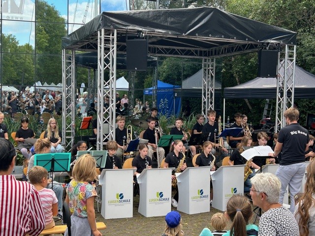 Am Sonntag, 8. September 2024, fand wieder das alljährliche Familienfest am Haus Ruhrnatur auf der Schleuseninsel statt. Wie in jedem Jahr war die Luisenschule doppelt vertreten. Es gab einen großen Experimentierstand, an dem die Kinder tolle Experimente machen konnten. Für die Unterhaltung sorgte auch in diesem Jahr wieder unsere Juniorband.
