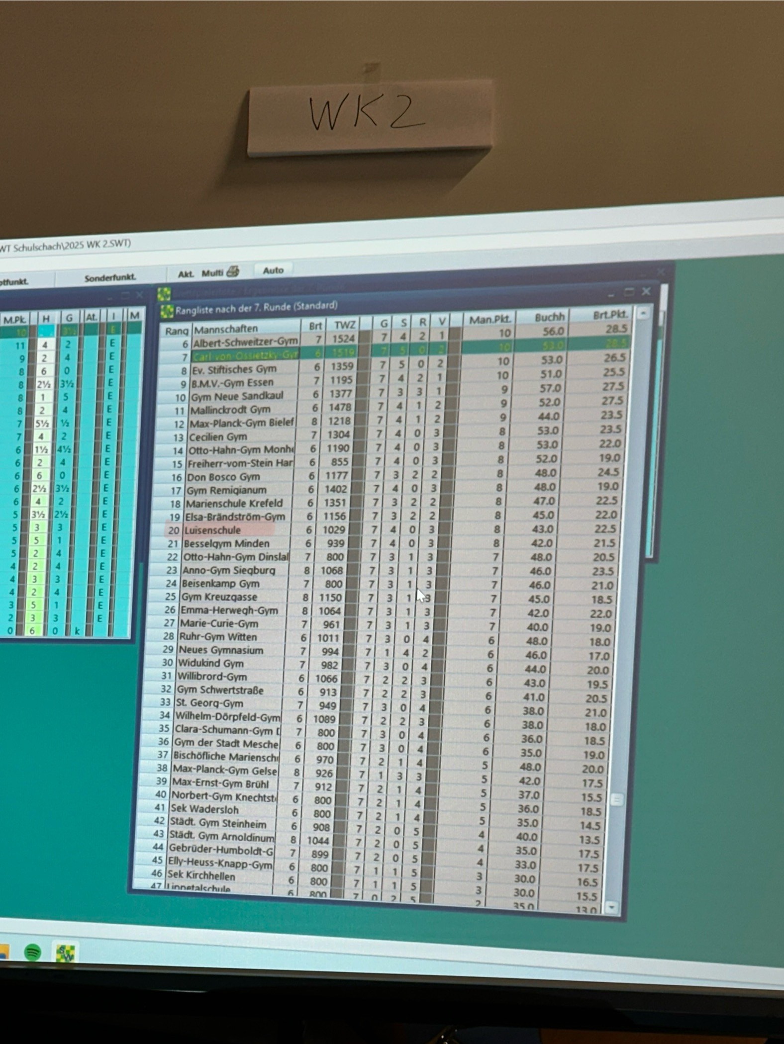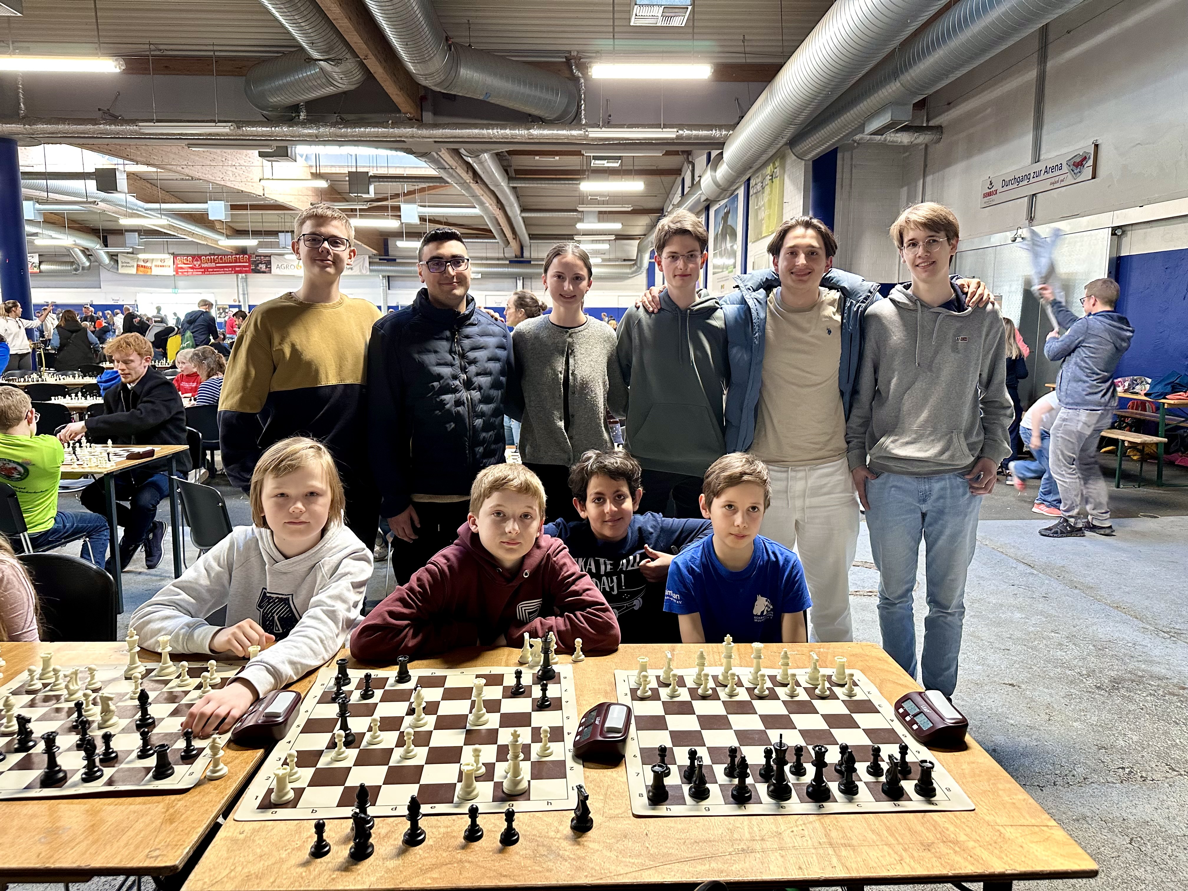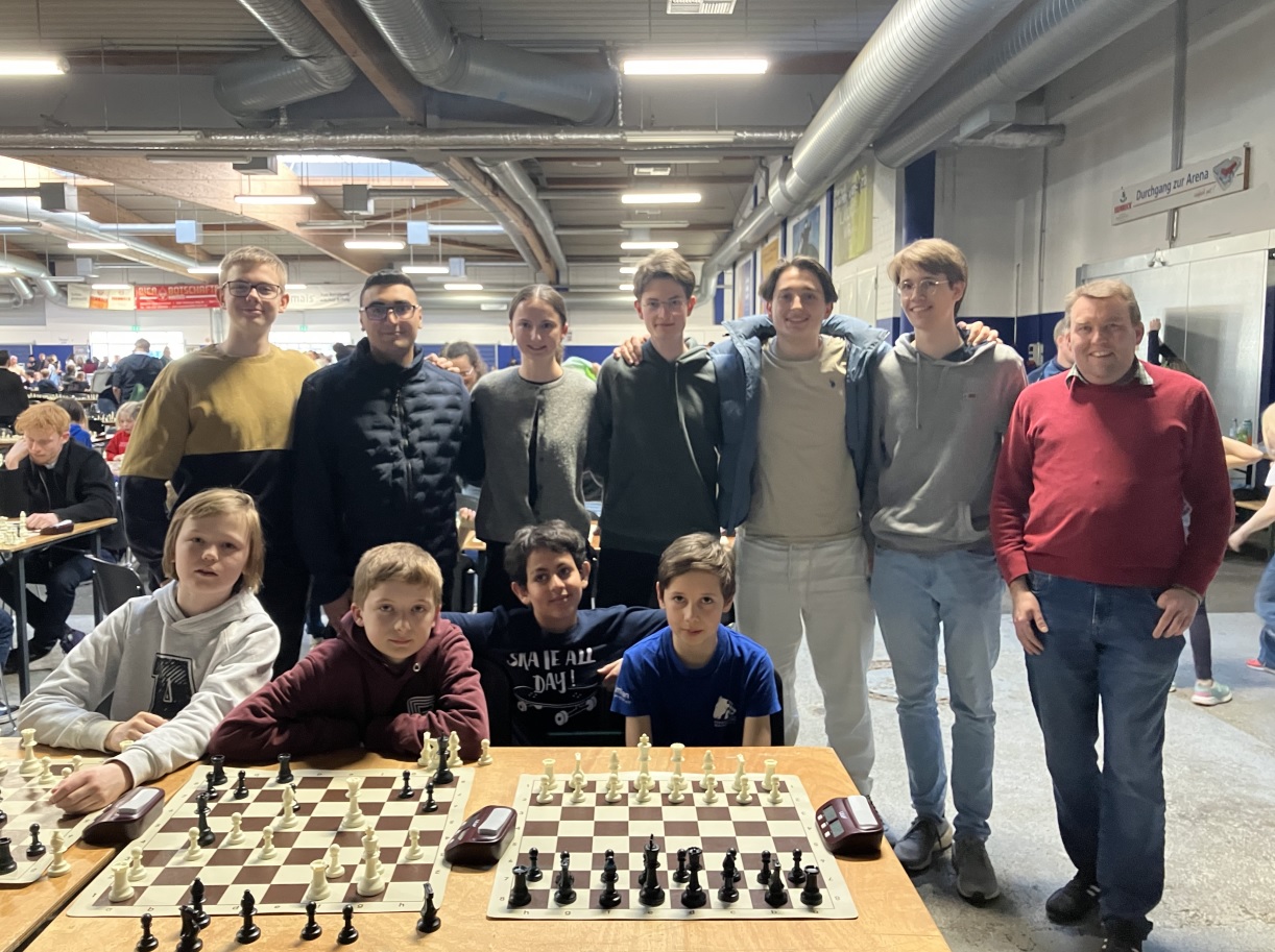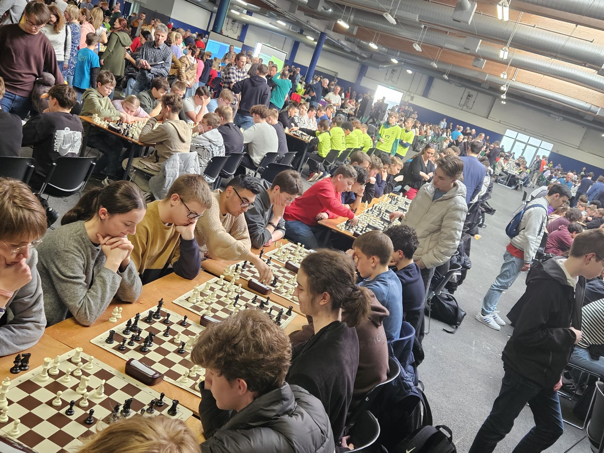 Über 1000 Schülerinnen und Schüler, die gleichzeitig Schach spielten, bildeten eine beeindruckende Kulisse. Dabei konnte unsere Mannschaft der Jahrgangsstufen 5 und 6 einen hervorragenden vierten Platz (von insgesamt 57 Mannschaften) belegen und verpasste erst im letzten Spiel ganz knapp den Einzug ins Bundesfinale in Karlsruhe. Erfolge feierte auch die Mannschaft der Jahrgangsstufen EF und Q2, die vier ihrer sieben Spiele gewinnen konnte und damit im oberen Mittelfeld ihrer Altersklasse landete.