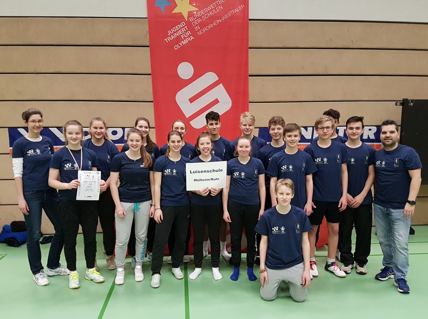 Das Landesfinale in der heimischen Innogy-Sporthalle war für die beiden Gastgeber-Teams einmal mehr ein Triumphzug. Das Team in der Wettkampfklasse II (Jahrgänge 2001 bis 2004) gewann alle seine Spiele mit 7:0 – selbst das entscheidende Duell gegen die Mannschaft aus Emsdetten, die bis dahin ebenfalls ungeschlagen geblieben war. In der Wettkampfklasse III – das sind die Jahrgänge 2003 bis 2006 – wurde die Luisenschule zumindest zum Auftakt vom Team aus Bergisch Gladbach gefordert. Hinter dem Schulteam steckt der Bundesligaverein TV Refrath. Nach dem verlorenen Einzel von Julia Meyer hatte auch das Mädchendoppel Matchbälle gegen sich. „Ein 0:2-Rückstand wäre schon heftig gewesen“, meinte André Krause, einer der beiden Sportkoordinatoren und seit Jahren für das Badmintonteam verantwortlich. Doch das Doppel wehrte die Matchbälle ab, ging noch als Sieger vom Platz und legte somit den Grundstein für den späteren 6:1-Erfolg. Durch zwei 7:0-Erfolge machte auch das jüngere Mülheimer Team den Landesmeistertitel klar.