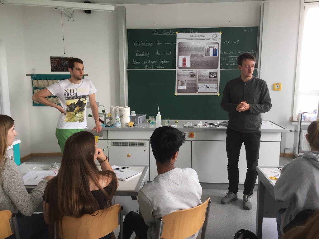 Am 26. Juni 2018 erhielten die Schülerinnen und Schüler der Klasse 9c von Frau Dr. Schulte einen ganz und gar außergewöhnlichen Chemieunterricht. Ein Team aus vier Wissenschaftlern des Max-Planck-Instituts für Kohlenforschung ist an die Luise gekommen und hat mit den Schülerinnen und Schülern gemeinsam das Thema Mobilität der Zukunft und Vielfalt der Energiespeicherung experimentell erschlossen.