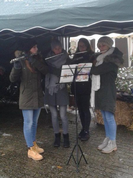 Auf dem Weihnachtsmarkt am Tiergehege im Witthausbusch, organisiert durch die INGHO, spielten unsere Musiker dem schlechten Wetter trotzend mehrstimmige Weihnachtslieder.