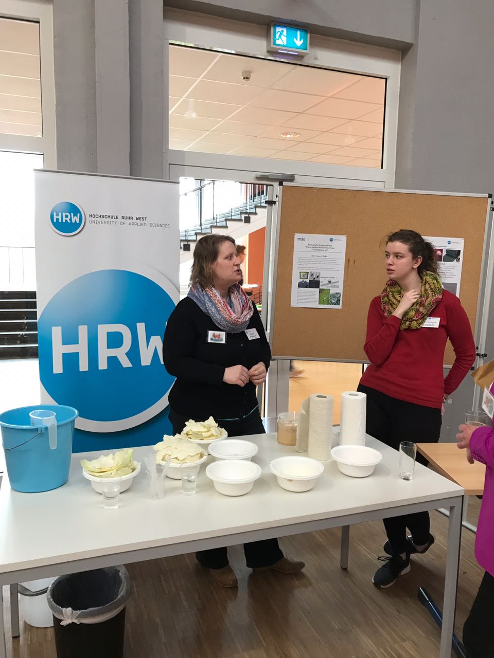 Wir wurden unterstützt von vielen bekannten Organisationen und Personen. Zum einen gab es am Montag einen spannenden Vortrag über die Rolle des Eis in der Bionik von der Wissenschaftlerin Daniela Hockmann, MINT4u-Koordination im Fachbereich Bauingenieurwesen & Maschinenbau der Hochschule Ruhr West hier in Mülheim. Am zweiten Tag besuchten die Schüler morgens das Haus Ruhrnatur, wo sie unterm Mikroskop Insekten, sowie ihre Eier bestaunen konnten. So haben sie nochmal gesehen, welche Tiere alle Eier legen und das auch bei welchen, bei denen man es nicht vermutet hätte. Sie haben lebende Wachteln und Schildkröten bestaunen können. Am Mittwoch standen dann wieder zwei Experimentalpraktika auf dem Programm und unsere große Abschlussveranstaltung, auf die wir schon lange hin gefiebert hatten.