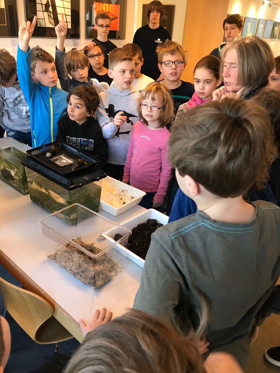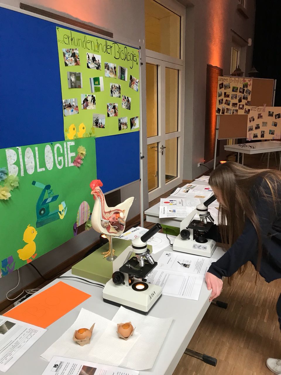 Wir wurden unterstützt von vielen bekannten Organisationen und Personen. Zum einen gab es am Montag einen spannenden Vortrag über die Rolle des Eis in der Bionik von der Wissenschaftlerin Daniela Hockmann, MINT4u-Koordination im Fachbereich Bauingenieurwesen & Maschinenbau der Hochschule Ruhr West hier in Mülheim. Am zweiten Tag besuchten die Schüler morgens das Haus Ruhrnatur, wo sie unterm Mikroskop Insekten, sowie ihre Eier bestaunen konnten. So haben sie nochmal gesehen, welche Tiere alle Eier legen und das auch bei welchen, bei denen man es nicht vermutet hätte. Sie haben lebende Wachteln und Schildkröten bestaunen können. Am Mittwoch standen dann wieder zwei Experimentalpraktika auf dem Programm und unsere große Abschlussveranstaltung, auf die wir schon lange hin gefiebert hatten.