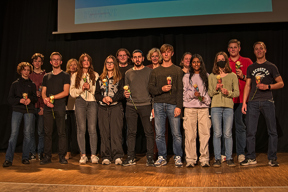 Am 21.10.2022 hat die Hochschule Ruhr West zur Premierenfeier des MINT-Hörspiels „Im Auge des Galileo“ in die Aula der Luisenschule eingeladen. Dieses Hörspiel hatten zwölf Schüler:innen des Chemie-Projektkurses von Frau Dr. Schulte in der Hochschule Ruhr West aufgenommen und nun stand die Veröffentlichung des Hörspiels an. In diesem professionell aufgenommen Hörspiel, welches von der MINT4u-Koordination der HRW Frau Hockmann, der Literaturpädagogin Frau Rotthoff-Wiegel und dem Sprechcoach Herrn Schneider begleitet wurde, stand die Verzahnung von Wissenschaft, Sprache und Sprechkunst im Fokus. In die Präsentation der einzelnen Szenen des Hörspiels wurden an diesem Abend auch experimentelle Rätsel eingebunden, die im Hörspiel Thema waren und die nun das Publikum lösen musste. Es war ein kurzweiliger Abend mit einer spannenden Reise in die Geschichte der mathematisch-naturwissenschaftlichen Forschung!