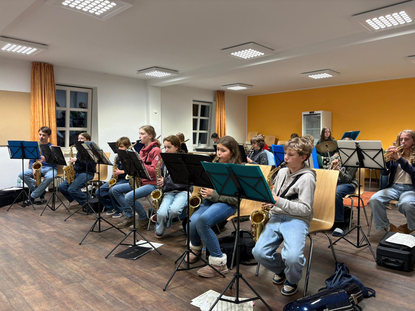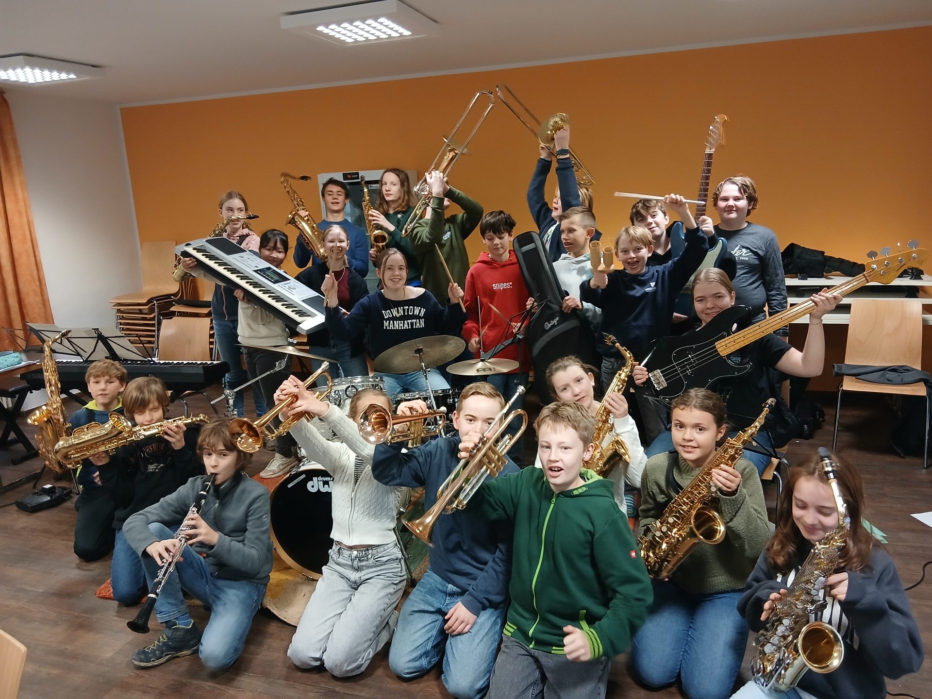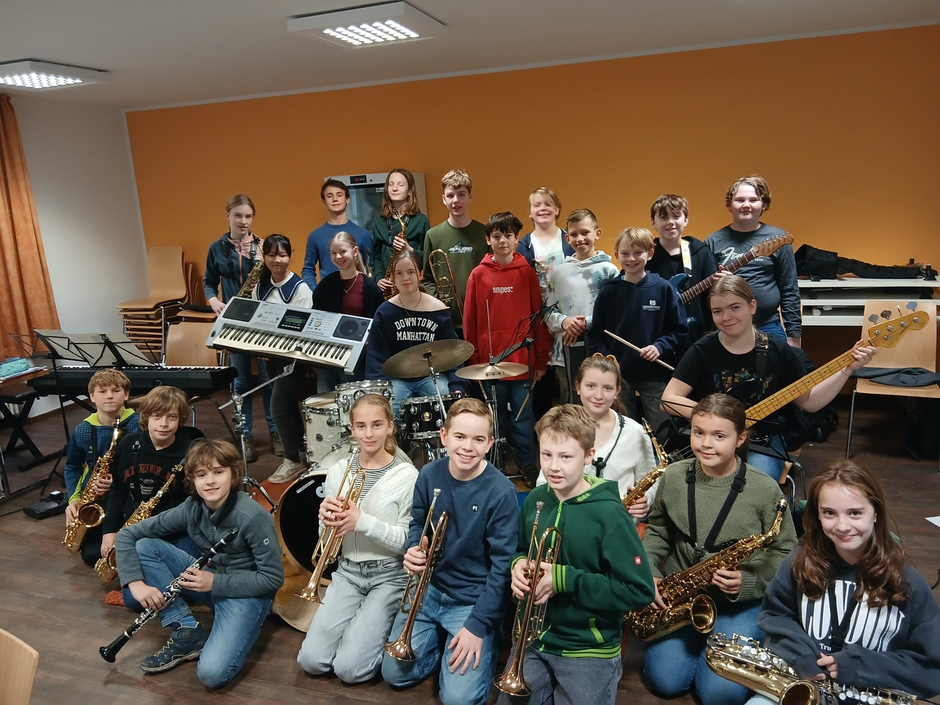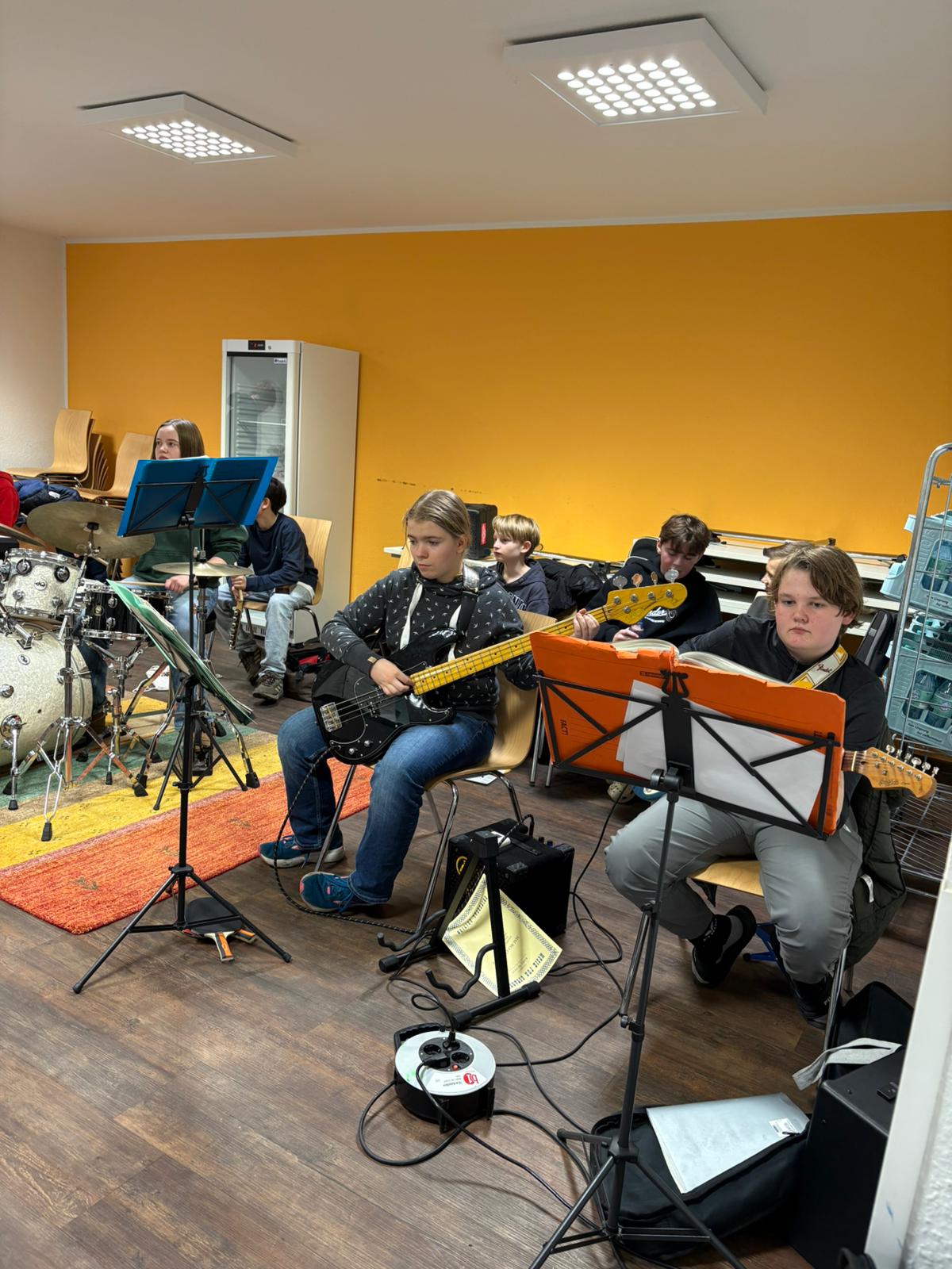 Auch in diesem Jahr fuhr die Juniorband wieder in die Jugendbildungsstätte St. Altfrid in Essen, um sich für zweieinhalb Tage intensiv auf die kommenden Auftritte vorzubereiten. Am Montag, den 17.11., begannen am Nachmittag die Proben, nachdem alle Schülerinnen und Schüler ihre Zimmer bezogen hatten. Die musikalische Arbeit wurde dann am Abend durch ein Coaching von Elina Otto (Abitur 2024) bereichert. Am Dienstag wechselten sich Satz- und Tuttiproben ab und mittwochs endete schließlich die Probenfahrt nach dem gemeinsamen Mittagessen.