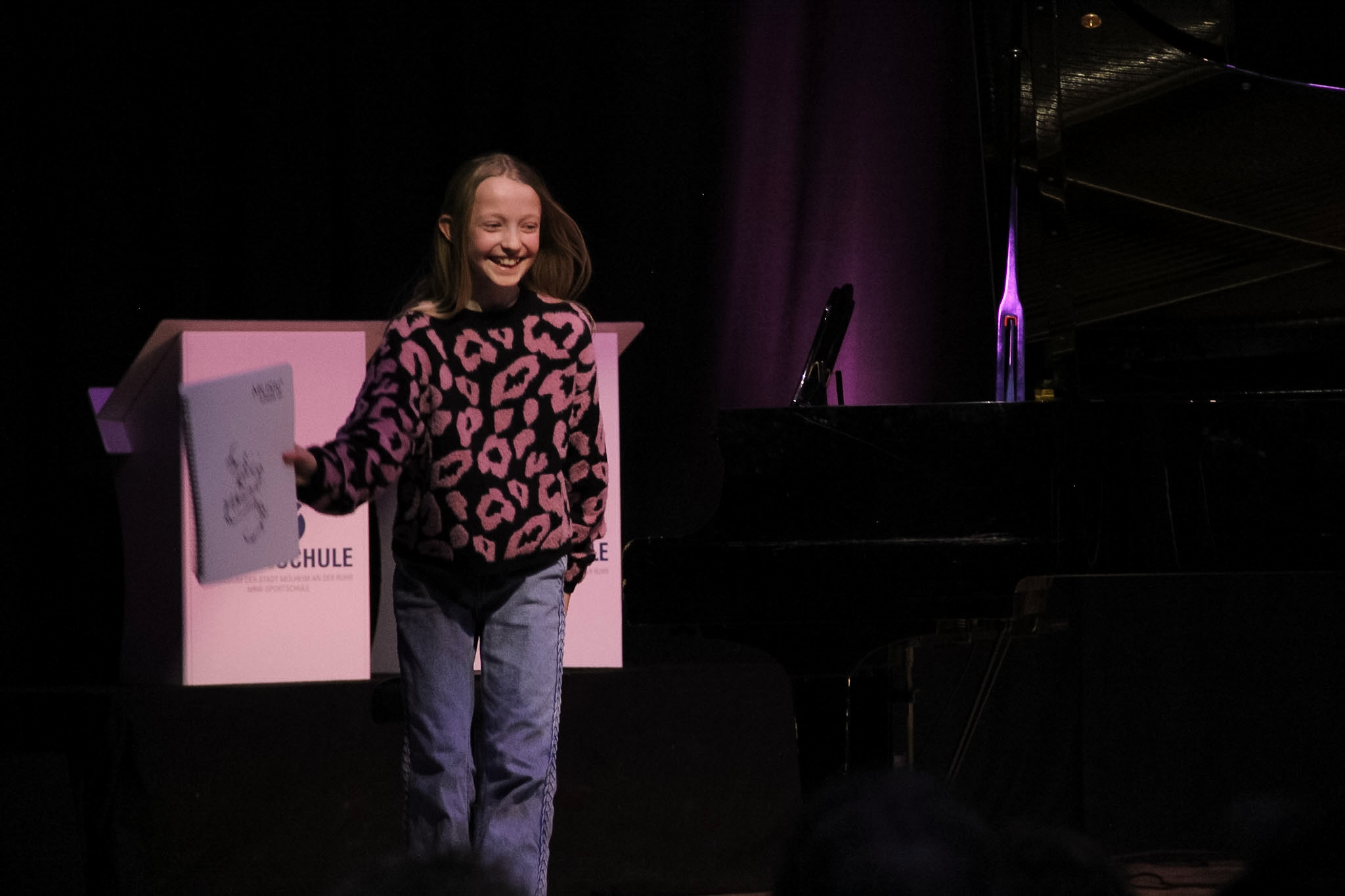 Aus dem Bereich der klassischen Klavierliteratur überzeugten gleich mehrere Schüler:innen: Zichen Weng (6a) mit Griegs Arietta, Jakob Felix Hüllen (6d) mit Verdis O wie so trügerisch und Aarons Tarantella, Clara Fleischheuer (7d) mit einem Rondo aus der Sonatine C-Dur von Mozart, Meret Meznar (7d) mit Chopins Polonaise in g-Moll, James Huang (9b) mit Griegs Der Zug der Zwerge oder Ole Einar Klein (Q1) mit der Tarantella von Franz Liszt. Maya Wulf (5c), Josefa Katharina Nocker Sossa (6d) und Helin Elbasan (8a) unterhielten hingegen das Publikum mit den Titeln aus der populären Musik. So erklang von ihnen Ed Sheerans Perfect, Henri Mancinis Charade und die Balladen Ballade pour Adeline und Sound of Silence. Außerdem sang Theodor Patrin (9b) Havana und begleitete sich dabei selbst am Klavier.