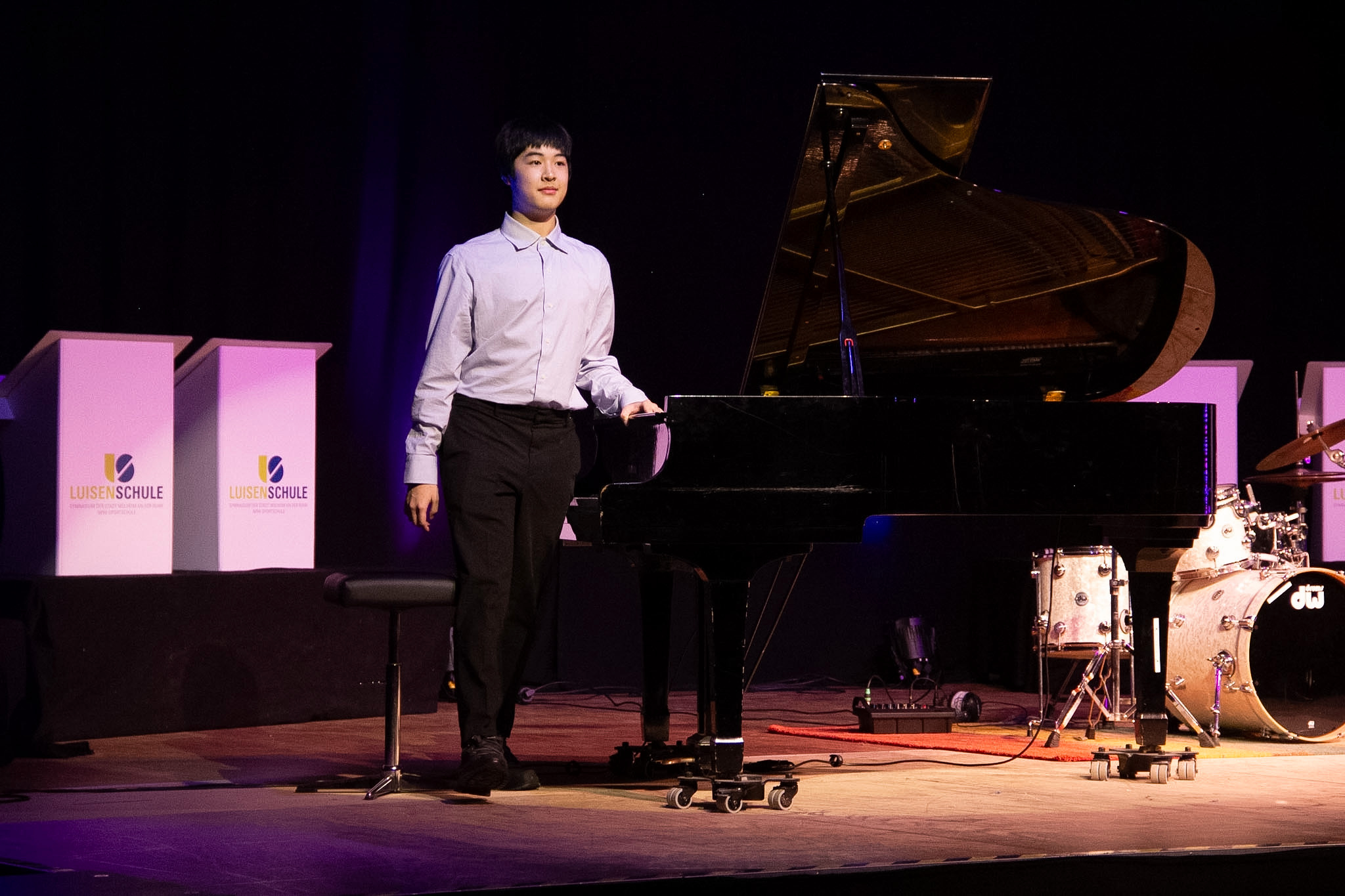 Beim Schüler:innenkonzert der Luisenschule treten traditionsgemäß Solist:innen oder kleine Ensembles auf, die nicht durch einen schulischen AG-Verbund organisiert werden; so auch in diesem Jahr.