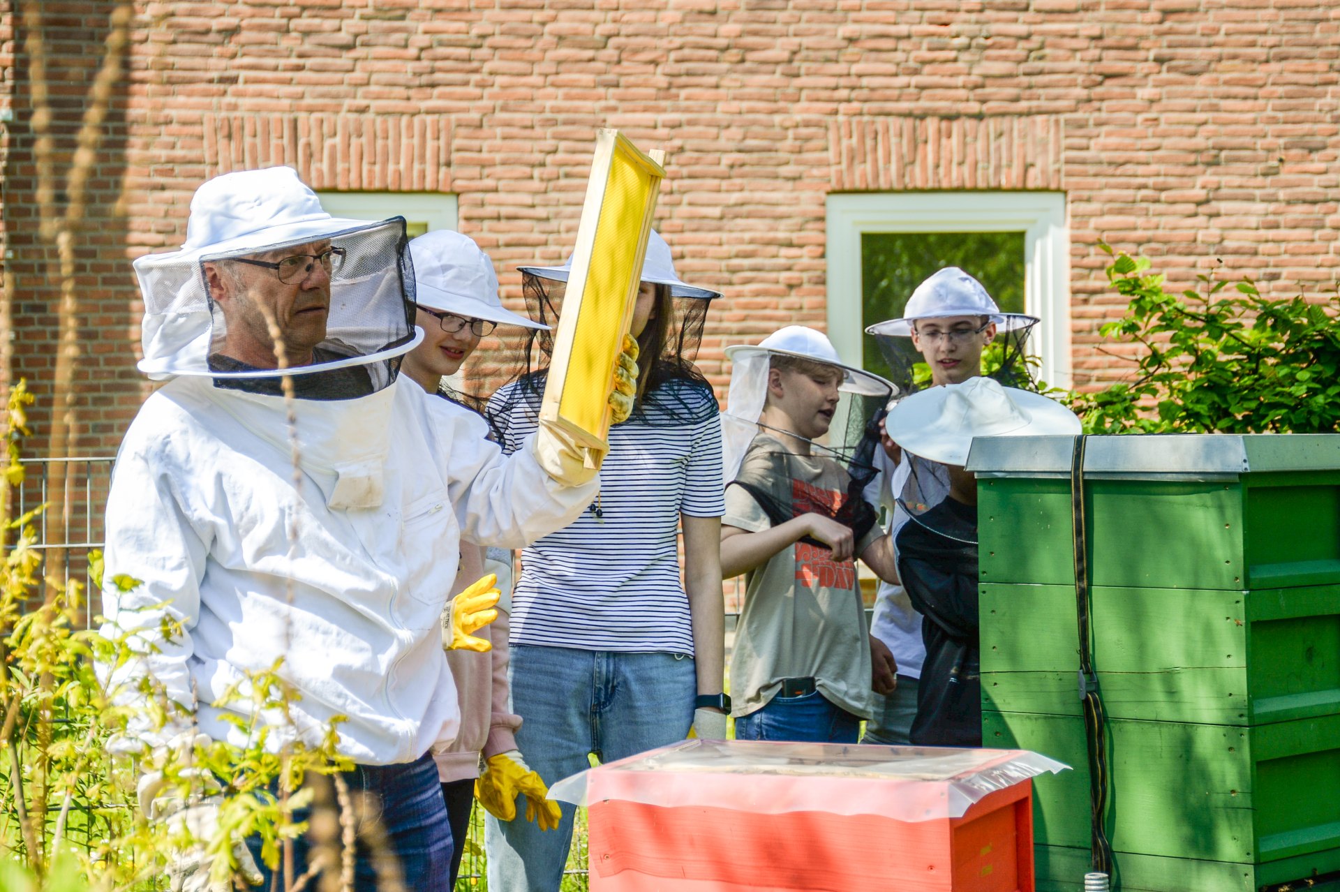 Die Freude in der Schulbienen-AG der Luisenschule ist riesengroß! Im Rahmen des Wettbewerbes „Biene-Lina“ der Sparkasse Mülheim an der Ruhr wurde ihr Einsatz für unsere Umwelt und den Erhalt der Artenvielfalt mit dem 1. Platz ausgezeichnet. Die Arbeitsgemeinschaft konnte die Juroren mit ihrem Konzept der Luisenschule als ökologischem Erfahrungsraum überzeugen und damit ein Preisgeld in Höhe von 1000,- Euro gewinnen, das nun für die weitere Arbeit und Projekte mit den an der Luisenschule angesiedelten Bienenvölkern verwendet werden kann. Ausgestattet mit neuen Schutzan-zügen können die Teilnehmer und Teilnehmerinnen der AG nun „bienenfleißig“ an ihre nächsten Vorhaben herangehen, denn das Bienenjahr hat begonnen ...
