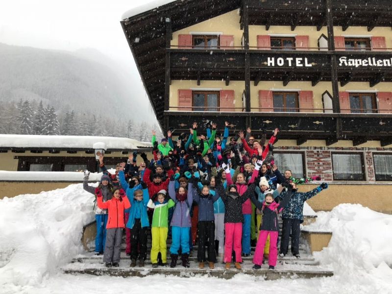Nach einer etwa 14-stündigen Fahrt sind wir im Ahrntal in Sankt Jakob angekommen. Unser Hotel hat uns, obwohl es schon so spät war, ein leckeres Abendessen zubereitet. Nach der Schlüsselausgabe haben wir unsere Zimmer bezogen. Morgens haben wir dann gegen 8:15 Uhr gefrühstückt und sind um 9:00 Uhr mit dem Skibus drei Haltestellen zur Talstation gefahren, wo wir dann unser Skimaterial erhalten haben. Die Anfängergruppen sind ins Klausiland (ein neben der Piste liegender Übungsplatz) gelaufen, wo wir uns erst einmal an die Ski gewöhnt haben. Die ,,Profis“ sind direkt mit der Gondel auf den Berg gefahren. In diesem Jahr gab es vier Anfängergruppen, eine Fortgeschrittenengruppe und eine Profigruppe (wir wurden unserem Ski-Können entsprechend zuvor eingeteilt).