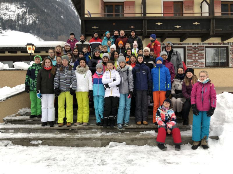 Als wir nach einer ca. 14-stündigen Busfahrt in Südtirol angekommen waren, haben alle ihre Zimmer bezogen und ausgepackt. Nach dem Abendessen, welches die gesamte Woche sehr lecker war, ging es für uns Kinder ins Bett. Am nächsten Morgen sind wir dann, in unseren Skigruppen aufgeteilt, zum Skidepot gefahren. Dort haben wir alle unser Skimaterial erhalten und konnten dann ziemlich zügig in unseren Gruppen mit dem Skiunterricht starten. Wir wurden insgesamt in sechs Anfängergruppen, in eine fortgeschrittene Gruppe und in eine Profigruppe eingeteilt. Unsere Skilehrer Frau Dittmer, Frau Coupette, Frau Bruckmann, Herr Dr. van Treeck, Herr L. Wolf, Herr Nowotzin, Herr Kewitz, Herr Heming, Herr Möller, Herr Krugmann haben uns während der gesamten Zeit auf der Piste betreut und uns eine Menge beigebracht.