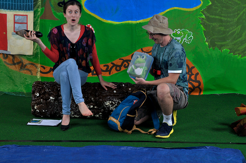 In January 2022 all students in grades 5 and 6 watched the play in our big auditorium. On the big stage there was just a small backdrop, because the play didn‘t need much space. The first scene showed a countryside and a bus. The two actors were playing three roles. The actor played a person called Joe. The actress played a student called Becky and the teacher of Joe and Becky called Mrs. Smith.