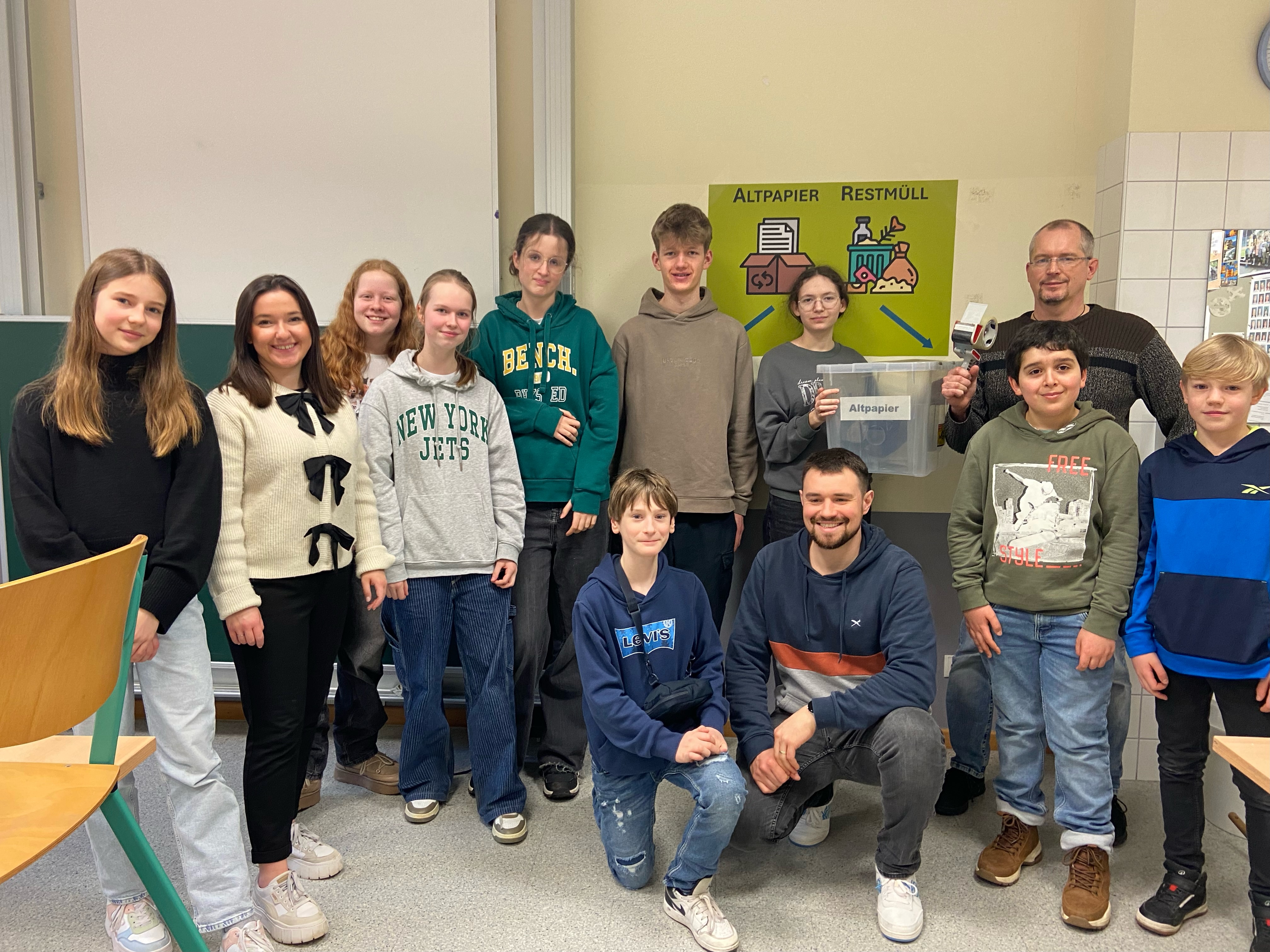 Zuvor hatte die Umwelt-AG für die Aktion Container besorgt, beschriftet, ein Plakat für alle Klassenräume entworfen und alle Räume damit ausgestattet.