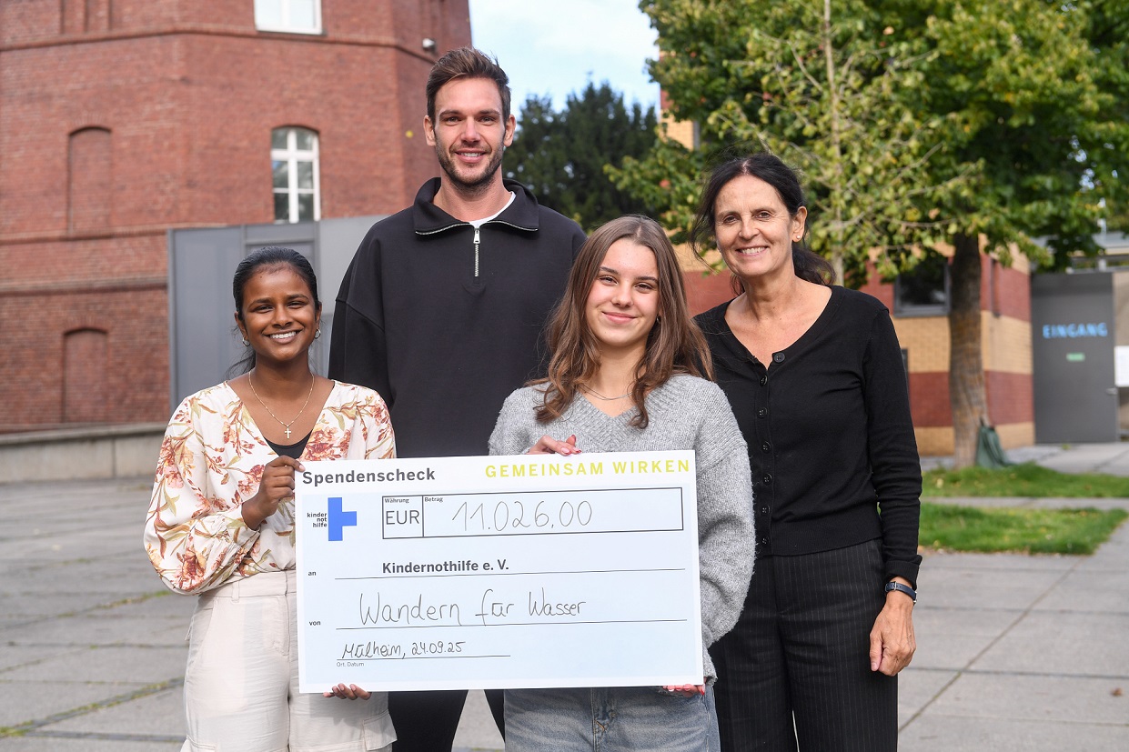 Jahr für Jahr liefert die Aktion „Wandern für Wasser“ verlässlich hohe Spendensummen. Auch 2025 wieder. So kann sich die Kindernothilfe über mehr als 11.000 Euro freuen, die der Verein für wasserwirtschaftliche Projekte in Burundi einsetzen kann. Mehr noch: die Summe, die sich aus Spenden von Familien und Freunden der Schüler*innen und den jeweils 3.000 Euro des Rotary Club Mülheim-Uhlenhorst und RWW zusammensetzt, wird noch vervierfacht. Da das Bundesministerium für wirtschaftliche Zusammenarbeit und Entwicklung bei derartigen Projekten jedem gespendeten Euro drei hinzulegt, werden der Kindernothilfe insgesamt fast 45.000 Euro zur Verfügung stehen.