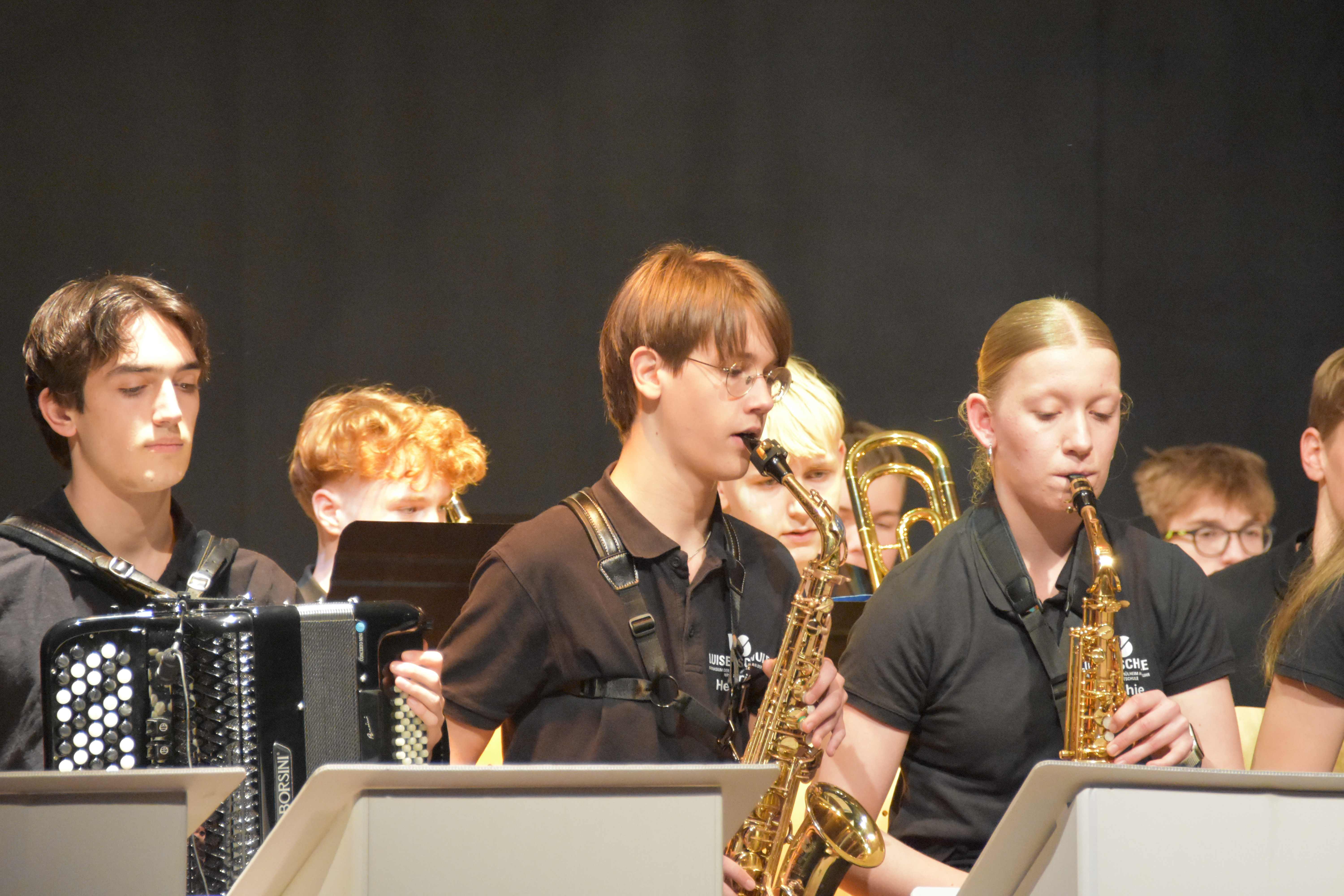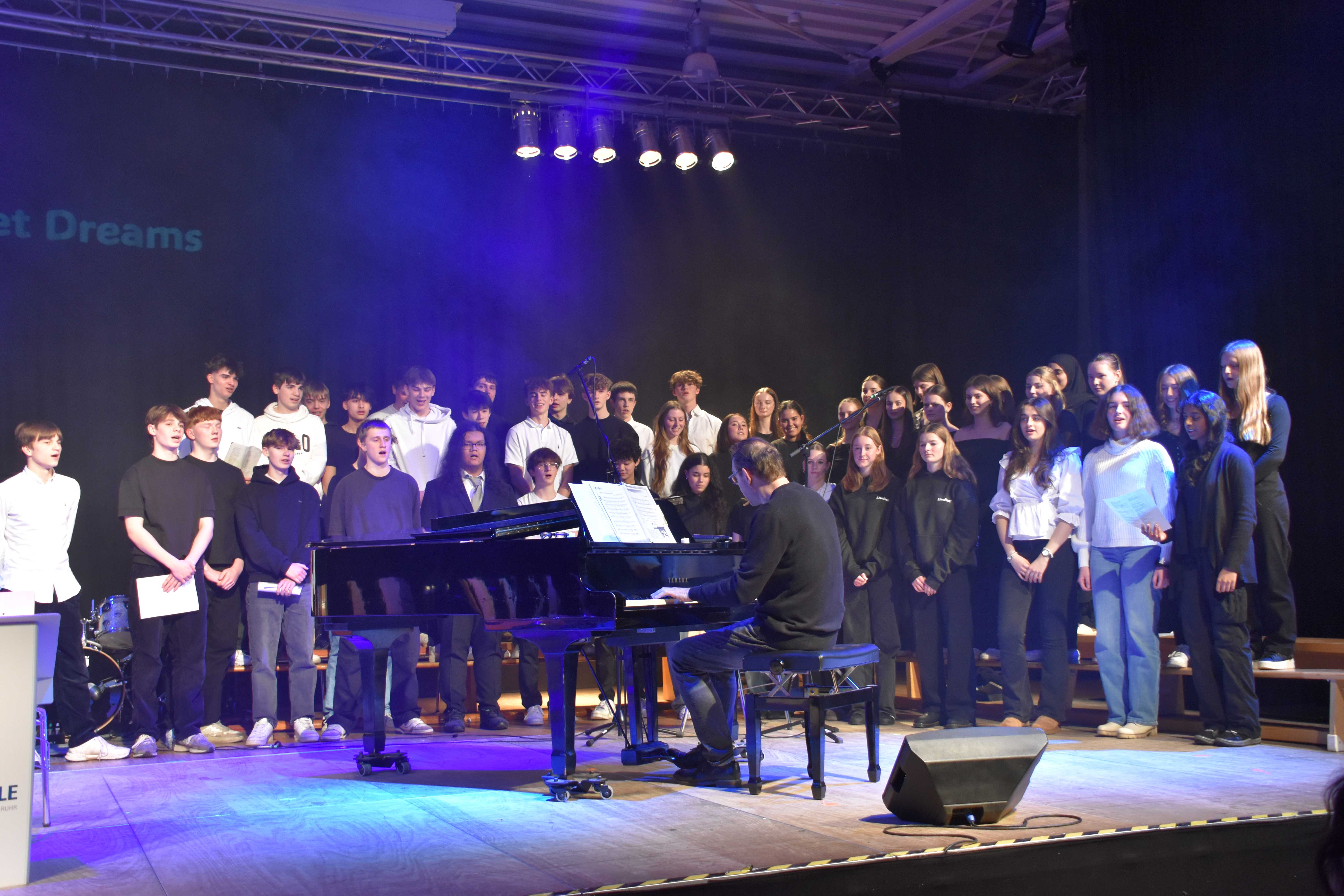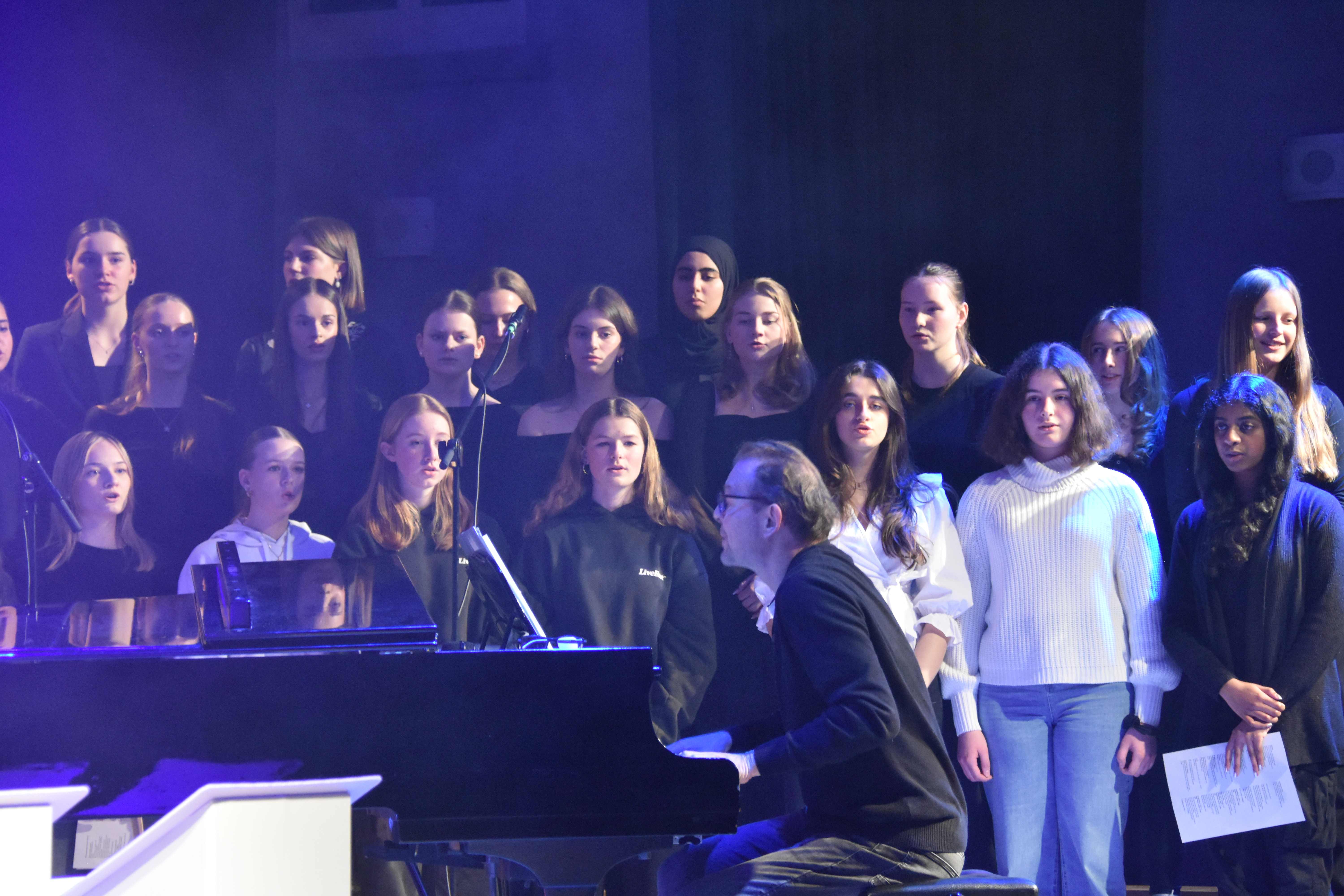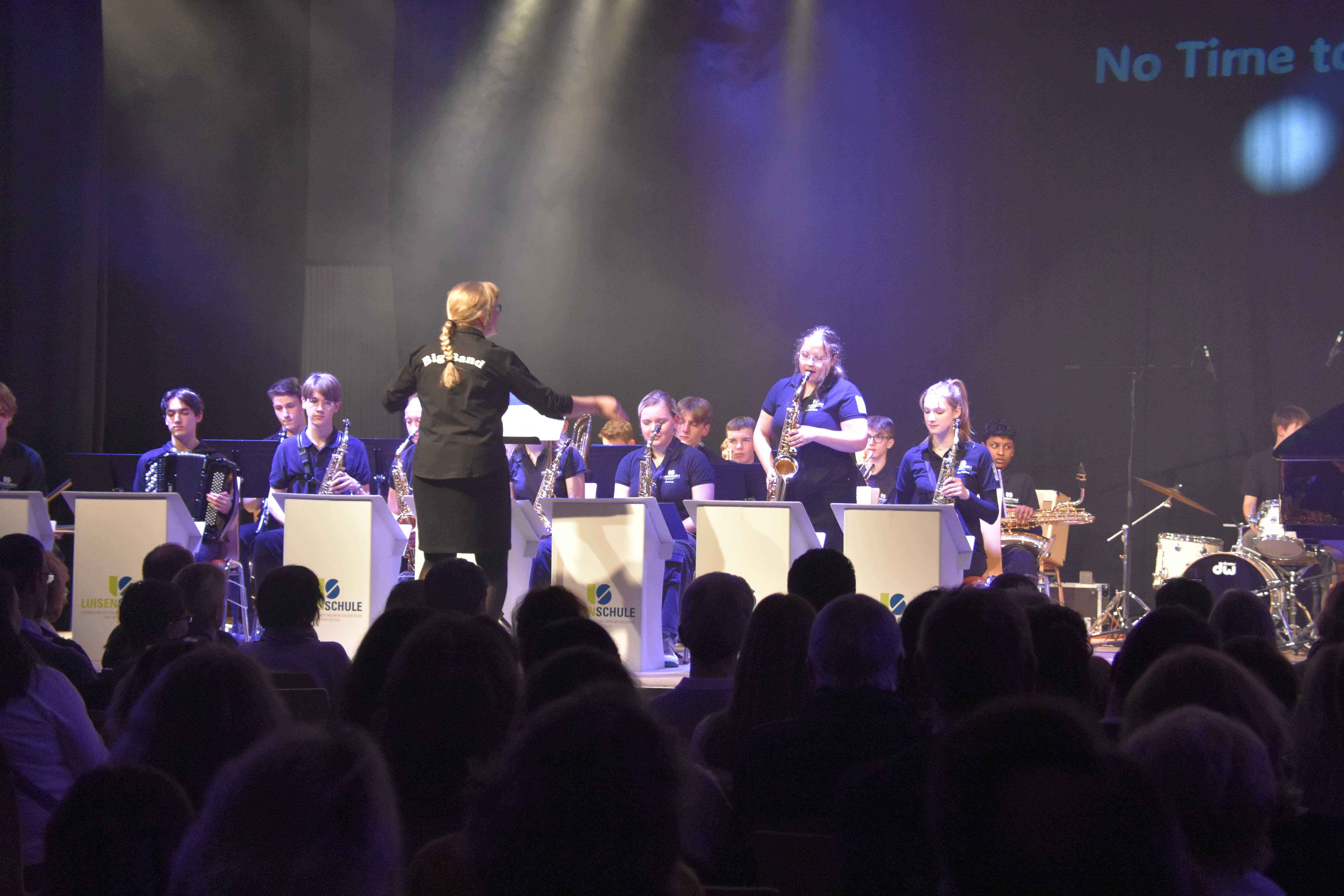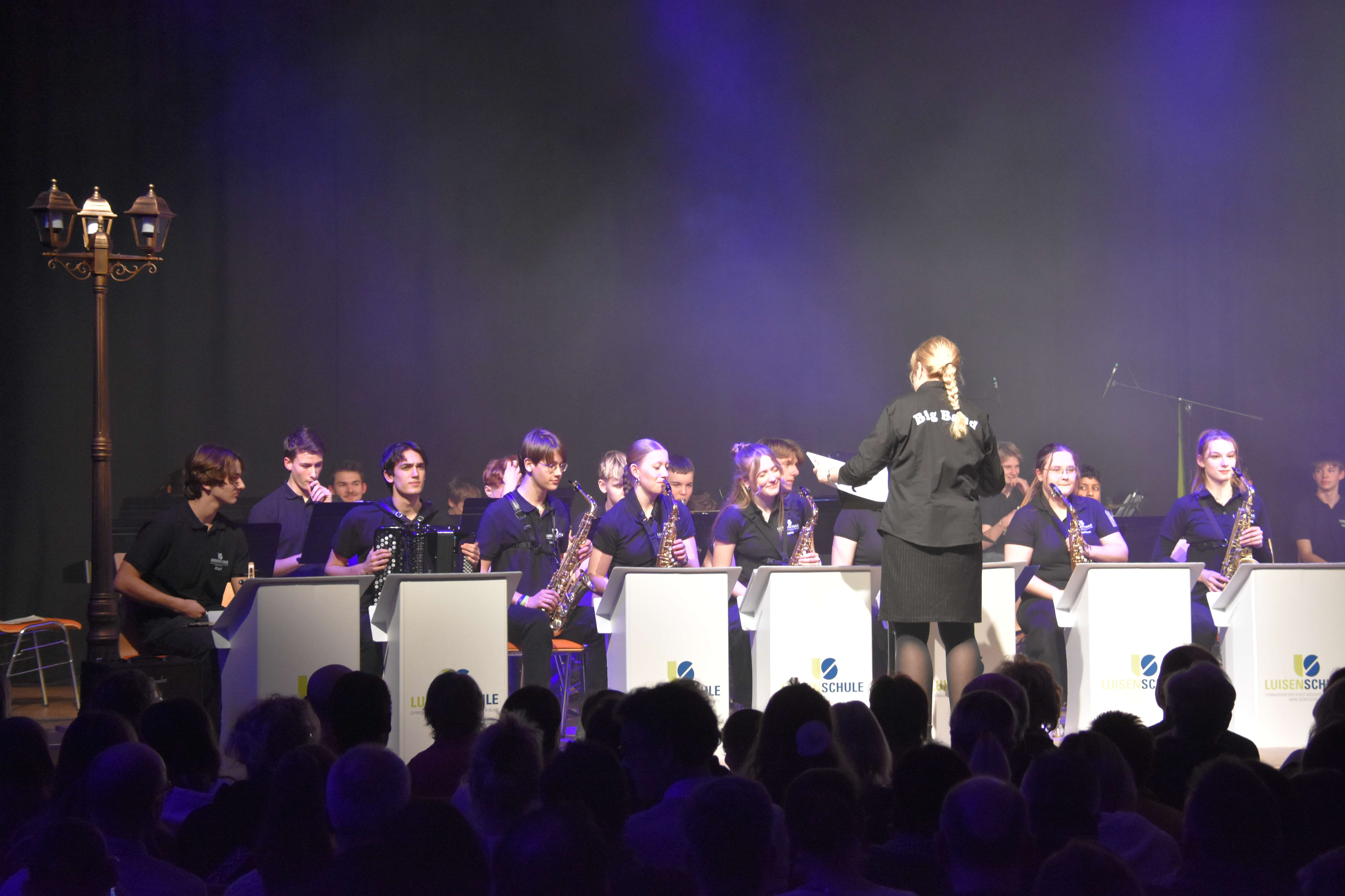 Beim diesjährigen Winterkonzert präsentierten die Ensembles der Luisenschule ein abwechslungsreiches Programm. Mit „Mercy Mery Mercy“ eröffnete die Juniorband die musikalische Reise in die Welt des Swing, Latin und Pop. Luise singt präsentierte Titel wie „Wind of change“ oder „Lichterkinder“. Nach eine 15 -minutigen Pause stellten die vokalpraktischen Kurse mit Stücken wie „Sweet Dreams“ und“ Stay“ ihr Können unter Beweis. Den Schlussakkord setzte die Big Band mit Titeln wie „Oye commo va“ und „Children of Sanchez“ und entlies das begeisterte Publikum in die abendliche Winterlandschaft. Das ganze Programm wurde mit Licht und Ton von der Technik- AG unterstützt.