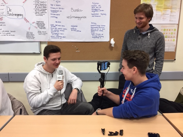 Im Anschluss daran haben wir eine Menge hilfreiches Equipment zum Ausprobieren bekommen: So heiß es nun im praktischen Teil des Workshops Interviews zu führen, die Kameraführung zu trainieren, den Kamerawinkel bestmöglich einzustellen, die Belichtung zu optimieren. Damit unsere Filme zukünftig auch hochwertig werden, durften wir uns das notwendige Equipment wie Stative, Mikrophone ausleihen, die wir am Ende unseres Projektkurses wieder an das zdi-Netzwerk zurückgeben.