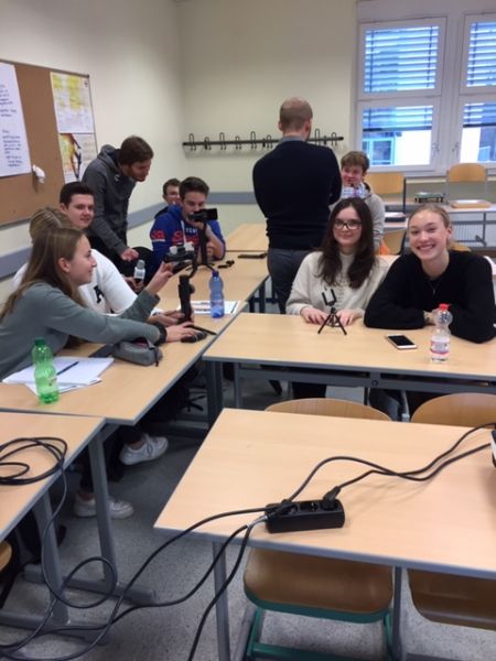 Am Montag, den 14. Januar 2019 kam ein Medienteam des zdi’s NRW (Zukunft durch Innovation) zu uns, dem Chemieprojektkurs der Q1 von Frau Dr. Schulte, um einen Workshop zum Thema „Mobile Journalism“ auszurichten. Im Dezember ist ein zdi-Filmteam an die Luise zu kommen, um einen tollen Film über unser Adventsprojekt zu erstellen (siehe dazu: https://www.youtube.com/watch?v=z2qM1PCL8A0), nun aber wollen wir in dem verbleibenden halben Jahr unseres Projektkurses selbst filmisch aktiv werden: Wir wollen einen Film über unsere Projektkursarbeit erstellen, einen über den Verlauf der Osterakademie, Interviews führen, eine Webserie auf die Beine stellen. Und damit dies alles auch professionell umgesetzt wird, haben wir Unterstützung vom zdi eingeholt und so wurde dem Dokumentationsteam des Projektkurses eine Fortbildung bei uns an der Luise möglich gemacht, um auch das Bewusstsein zu schärfen, dass sowohl im Journalismus als auch für Marketing und Unternehmenskommunikation Videos, Fotos und Audios immer wichtiger werden, da wir mit unserem Smartphone heutzutage permanent multimediale Inhalte konsumieren.